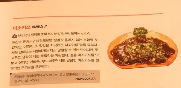 나고야만의 향토 음식을 ‘나고야메시’라고 하는 모양이다. 그 중에 가장 유명하고 인기 있기로 세 손가락 안에 드는 것이 히츠마부시(장어덮밥), 미소카츠(된장 돈까스), 미소니코미우동(된장 우동)이다. 나고야에 왔으니 돌아가기 전에 3대 명물은 먹어보고 가야겠다고 다짐했고, 스타트를 미소카츠로 끊었다.