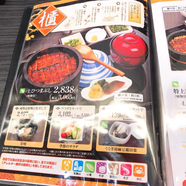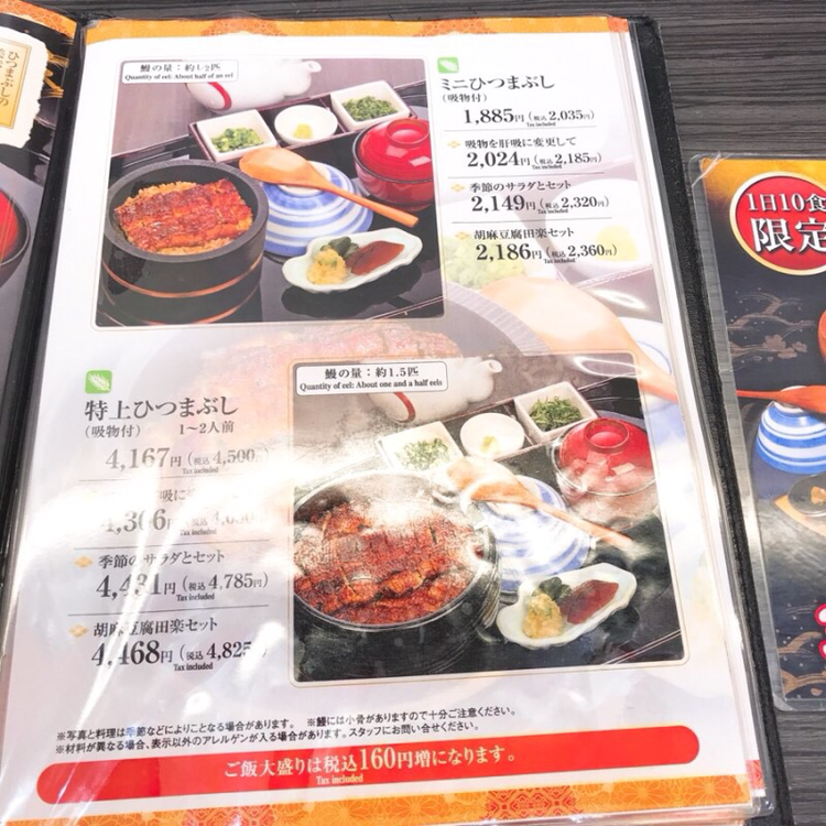 히츠마부시와 장국, 야채절임과 김과 파 등의 야쿠미가 나온다.