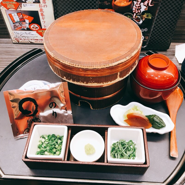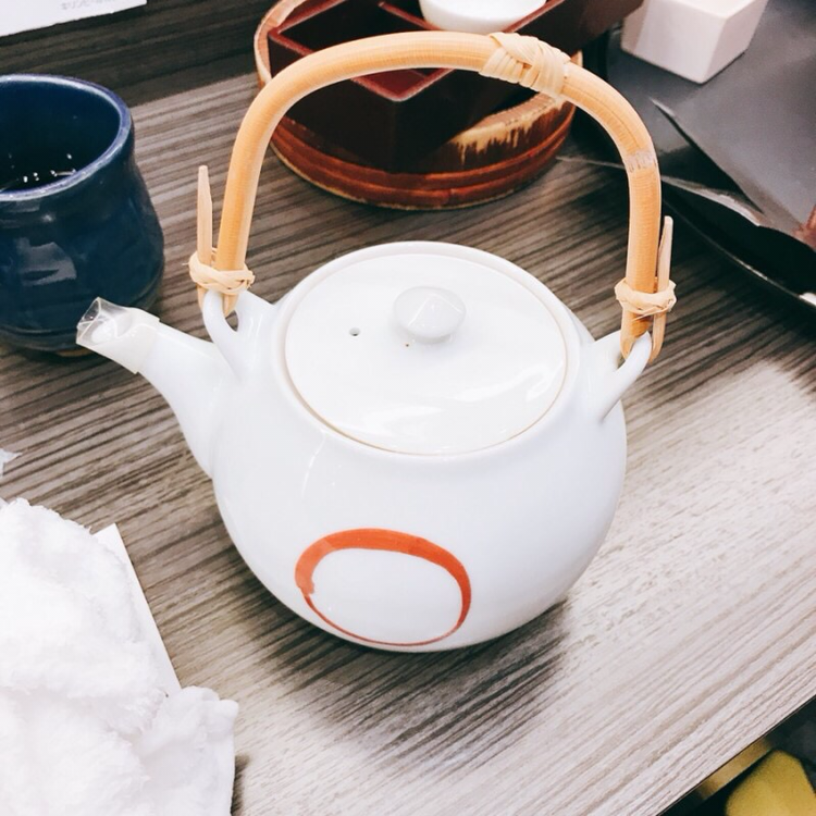 세 번째 방법은 오차즈케로 먹는 것이다. 오차즈케를 먹으려면 밥에 차를 부어야하는데, 눈을 씻고 찾아봐도 차가 없었다. 옆 사람들의 행동을 지켜보았더니, 종업원에게 무언가를 얘기하니 찻주전자가 하나씩 나왔다. 왼쪽 손님에 이어 오른쪽 손님들도 주전자를 받는걸 보고, 나에게도 저 주전자를 달라고 했다. 주전자가 나온 후 빌지에 무언가를 표시하는걸 보니 추가요금이 있는 것 같다. 우리는 영양밥 누룽지에 붓는 주전자 물이 무료인데.