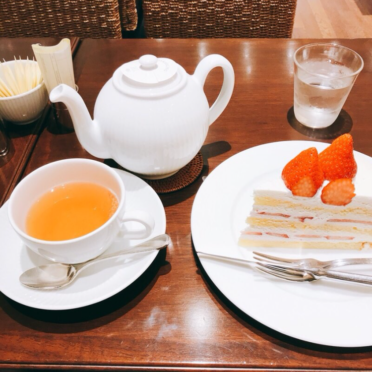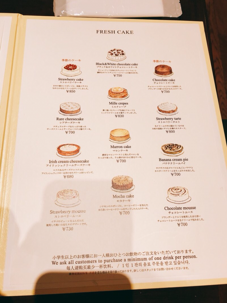 메뉴판 만큼이나 디스플레이 되어 있는 케이크들은 예쁘고 먹음직스러웠다. 엄청난 생크림이 올라간 스트로베리 타르트가 먹고 싶었지만, 가이드북에서 추천한대로 스트로베리 케이크를 시켰다.