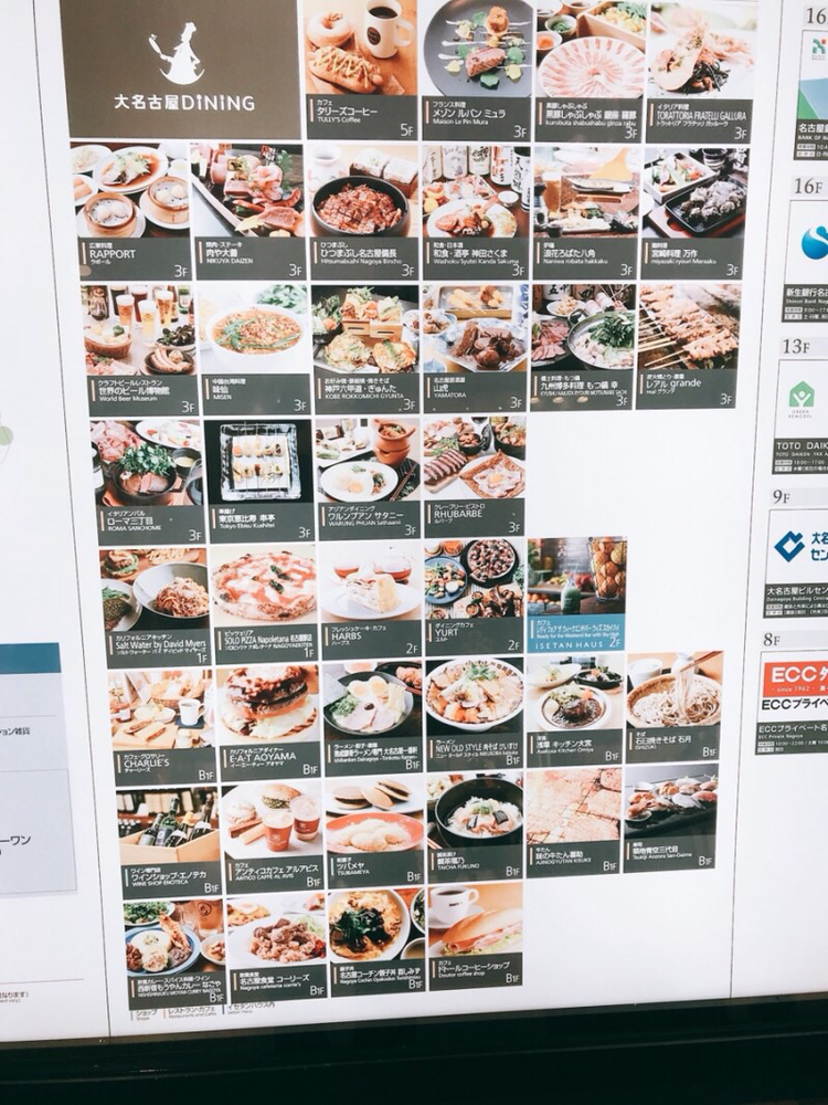 혹시나 해서 전날 저녁에 봤던 사라 베스에 가보았다. 그랬더니 점원이 바깥에 있는 대기줄에 서라고 했다. 족히 두 시간은 기다려야 할 줄이었다. 깔끔하게 체념하고 예정대로 하브스를 찾아 나섰다. 하브스는 나고야역에서 길을 건너 ‘대나고야’라는 쇼핑센터에 있었다. 대나고야 빌딩 식당가에는 하브스 말고도 다양한 먹거리들이 많았다.