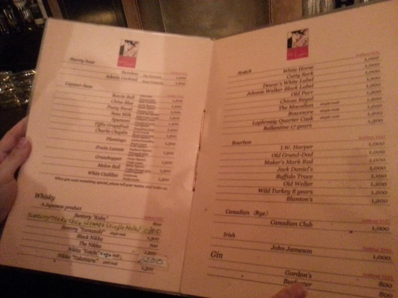 일본 바엔 대부분 자릿값의 일종인 커버 차지가 붙는다. 그래도 여긴 커버 차지가 800엔이니, 근처의 1,800엔을 받는 다른 곳보다 훨씬 저렴했다.