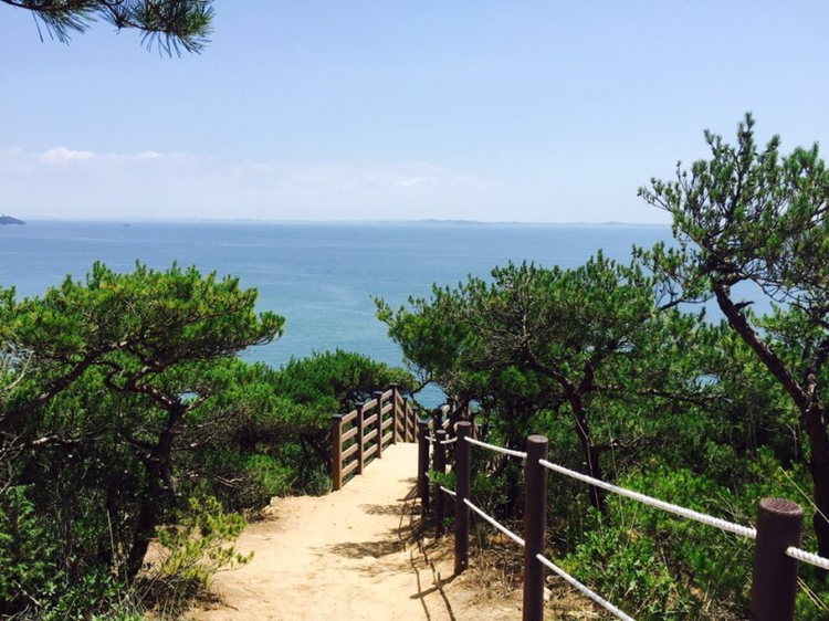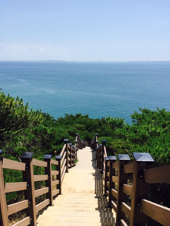 하산하는 길에도 여전히 바다는 아름다웠다.