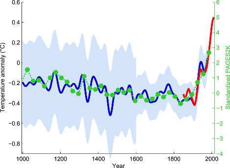 연륜연대 학자들과 기후학자들은 먼 과거의 기후를 추정하고 현재까지의 기후변화 트렌드를 분석했다. 약 천 년 전부터 현재까지 지구 연평균 기온을 추정해 얻어낸 그래프는 무척 흥미롭고도 놀랍다. 제리 말만이라는 기후학자가, 그래프의 모양이 하키 스틱을 닮았다고 해서 하키 스틱 곡선이라 이름 붙였는데, 이후 학계에서 널리 사용하는 별칭이 되었다. 이 그래프는 최근 150여 년 간의 평균기온이 급격하게 상승하는 현상을 뚜렷하게 보여준다. 급격한 변화 구간은 산업화 시기가 겹치기 때문에 지구온난화 현상이 인간 활동에 기인한다는 점을 넌지시 말하고 있다. 오늘날 기후변화에 따른 지구 재앙의 경고를 음모론으로 치부하는 사람들에게 합리적이고 적나라한 증거가 아닐 수 없다. 나아가 더 많은 분석이 누적된다면 미래의 기후변화까지 꽤 정확하게 예측해서 닥쳐올지 모를 기후재앙에 대비할 수도 있겠다.