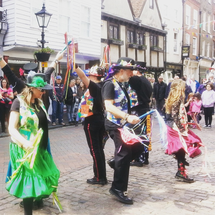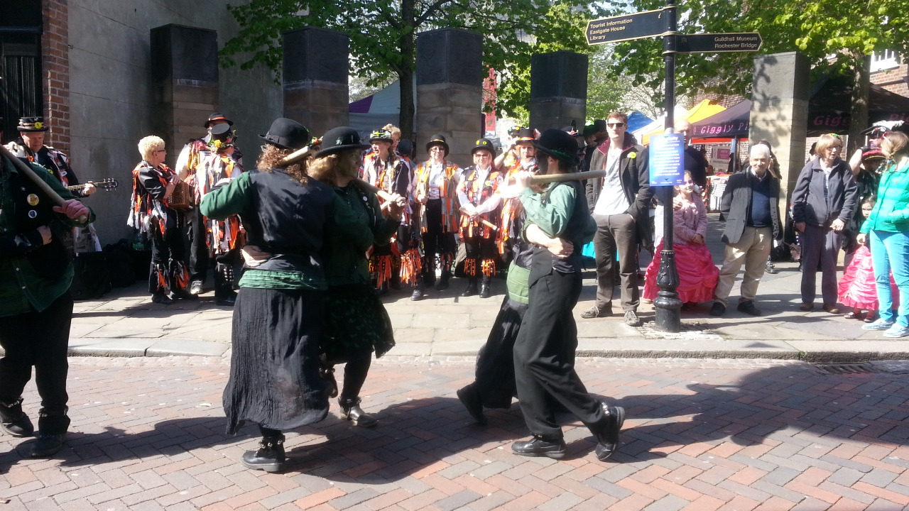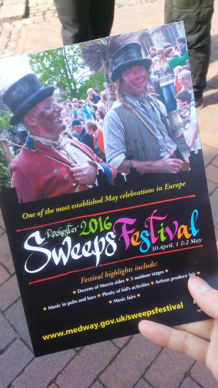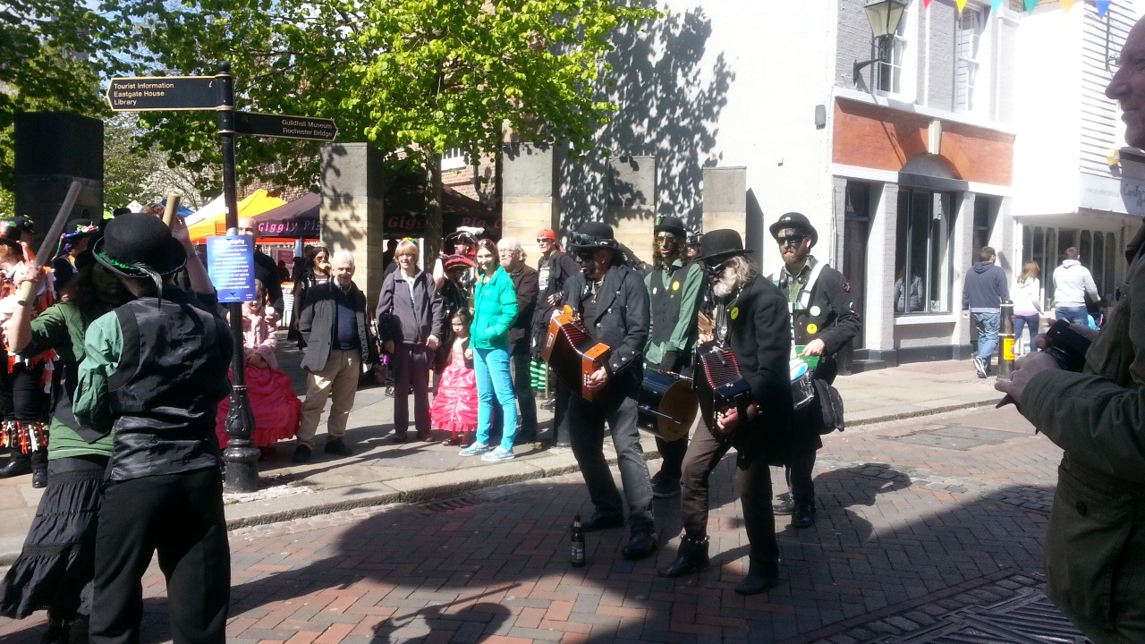 Rochester에서는 Bank holiday를 기념하여 축제가 진행중이다. Sweeps Festival이라고 하는데 축제의 기원이 좀 재미있다. 이 작은 도시에는 굴뚝 청소부들이 있는데 Bank Holiday만 되면 거리로 튀어나와 얼굴에 숯칠을 한뒤 분장과 악기, 그리고 청소도구를 두들기며 즐겁게 휴일을 즐기는 것이 시작이라고 한다. 그래서인지 역에서부터 분장한 사람들이 눈에 띄었고 마을안으로 들어갈수록 점점 음악소리가 들려오면서 신발에 방울을 매달고 신바람나게 걸어다니는 사람들을 만나볼 수 있었다.