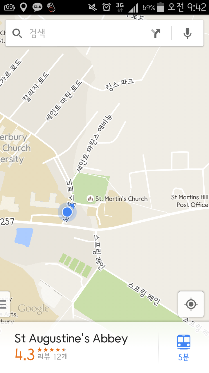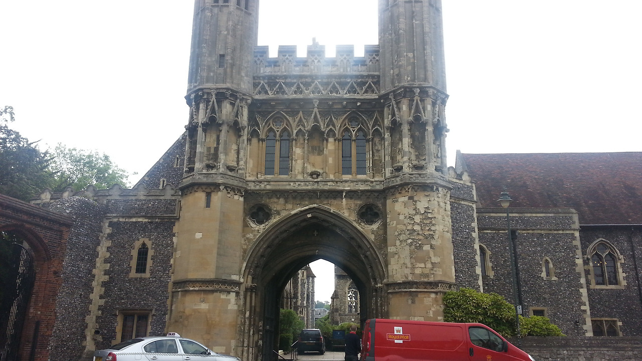 2시간정도 버스를타고 도착한 곳은 바로 Conterbury다. 영국 남쪽에 해안가까이에 위치한 도시인데 오기전에 간단히 알아본바로는 영국에서 가장 높은 대성당이 있는 곳이며, 교회와 성당이 엄청 많은 곳이였다. 교회 대학교도 있을 정도였는데 영국의 교회, 성당 사랑을 옅볼수 있는 부분이였다. 9시에 도착하다보니 아직 하늘은 침침하고, 거리는 비어있고 쌀쌀한 바람이 불어오고 있었다. 대충 코스를 짜고 돌아보려고 했는데 처음에 간 곳이 St. Abbey라는 곳이였는데.. 입장료가 있었다. 그래서 그냥 울타리 넘어로 슬쩍 보는걸로 그쳤다. 그 뒤에는 도시를 일단 걸어다녔다. 대부분의 교회나, 박물관들은 유료입장이라서 대성당을 들어가기위해서는 돈을 쓸 수는 없었다.