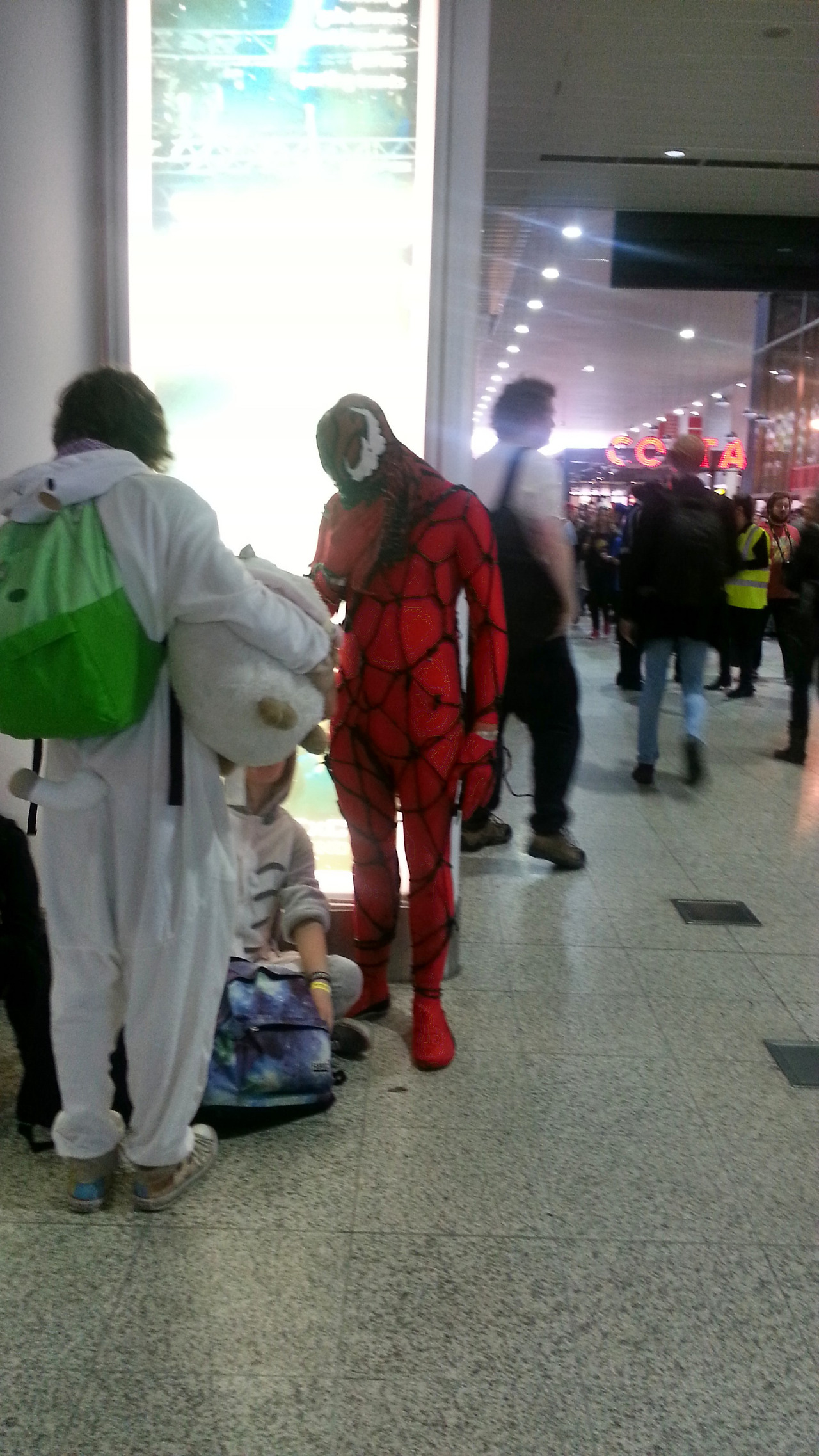 오픈시간은 11시부터 6시반 까지였는데(조금더 비싼 티켓을 사면 9시부터 입장가능하다.) 하루종일 돌아다닐일도 없고, 2-3시간정도면 충분하다고 생각해서 천천히 출발했다. 어제 너무 피곤했기 때문이기도 했다. 아무튼 코믹콘이 열리는 곳은 집으로 부터 꽤 멀었는데, 튜브를 타지 않으면 한참을 돌아가야했고, 버스도 2시간이 넘는 시간이 걸린다고 지도에 나와서.. 괜히 늦게가서 후회남길 바에야 그냥 1존구간도 튜브를 타고 바로 직행했다. 도착한 곳은 Custom House for ExCel이라는 동쪽 3존에 위치한 곳이다. 튜브역에서 내리니 역에는 엄청난 인파로 붐비고 있었다. 절반정도의 사람들이 코스튬을 입고 있었는데, 포켓몬스터, 아이언맨, 스파이더맨 등 친숙한 캐릭터들 뿐만아니라 드라마에서나오는, 그리고 게임에서 나오는 캐릭터들의 분장도 많았다. 그중 어쌔신크리드라고 하는 암살자 게임의 주인공을 분장한 분은 진짜... 대박이였다. 게임안에서 화면을 깨부수고 튀어나온 듯한 분위기... 사진을 찍었어야했는데 넋놓고 쳐다보다가 인파에 휩쓸려 놓치고 말았다.