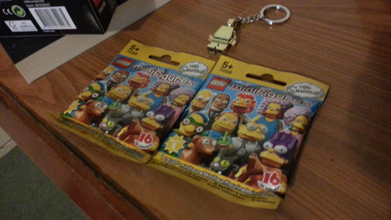 세탁기가 돌아가는 동안 사온 물건들을 정리해봤다. 스파이더맨 레고 하나, 심슨 팩 2개 그리고 열쇠고리 하나 마지막으로 해리포터와 마법사의 돌. 제일 기대하던 스파이더맨 시리즈부터 조립을 하고 그 다음에 심슨을 뜯어보았다. 그랬더니 결과는? 짜잔