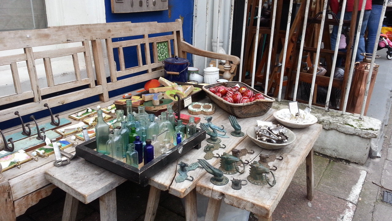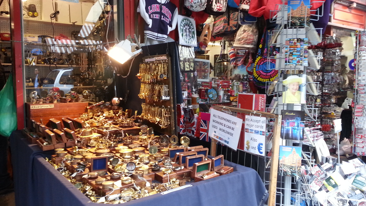 런던의 유명한 시장이니 당연히 관광객들이 많았다. 캠던 마켓처럼 널직한 거리에 기념품 판매점으로 가득한 것이 아니라 훨씬 더 전통시장 같았다. 곳곳에 눈에 띄는 골동품 상점들이나 그것을 열과 성의로 설명하는 판매상들. 이것들이 한데 어우러져서 내가 생각하던 전통시장의 느낌이 났다. 특히 예술품 판매점들이 많았는데 일반 예술가들이 만든 장식품들이나 거울, 시계, 지도 등 여러 물품들이 각각의 예술가명을 달고 가게에서 전시, 판매되고 있었다. 진짜 소장욕구를 절로 불러일으키는 물건들이였다. 집 곳곳에 걸어두면 서양풍 느낌도나고 좋을 것 같았다. 물론 한국집에서. 그리고 골동품 가게가 많이 포진해있는것처럼 카메라도 전시되어있었다. 진짜 클래식한 모델들이였는데 사실 카메라에대해서 잘 알지는 못하지만 교과서나 책에서나 보던 사진기도 있었다. 그 뿐만아니라 골동품에서 빠질 수 없는 레코드판도 있었다. 수많은 전축과 그 전축에서 돌아가는 레코드판이 만들어내는 소리가 마켓 곳곳을 채우고 있었다.