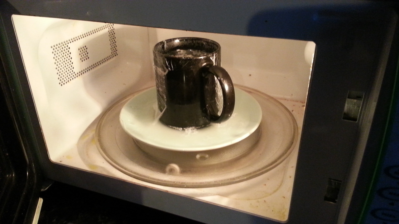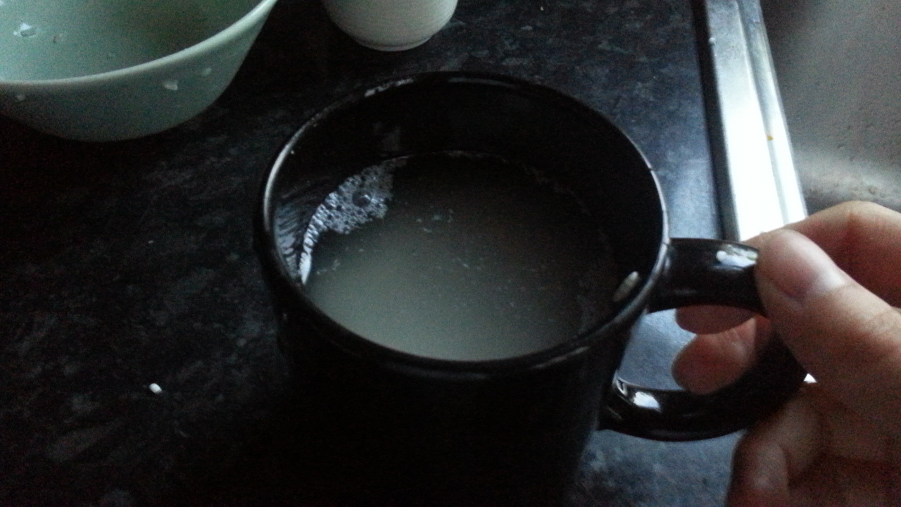 쌀을 10분간 불리고 컵에다가 옮긴뒤 쌀과 같은 양의 물을 집어놓고 랩으로 뚜겅을 덮고 물이 흘러넘치는 것을 방지하기위해 바닥에 접시를 깐뒤에 전자레인지에 3분 돌렸다.