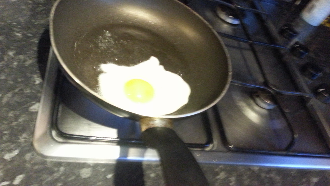 그리고 밥을 하는 동안에 계란프라이를 하고 있었는데 계란도 살짝 문제가 있었다. 분명 내가 기억하기로는 식용유를 냄비에 두르고 불을 올린 뒤에 열기가 올라오면 계란을 까고 소금을 뿌리고 몇번 뒤집으면 끝이다. 라고 알고 있었다. 다만... 열 체크를 잘 못했던 것 같다. 어디서 본건 있어서 손바닥으로 열을 확인하며 고개를 혼자 끄덕여가며 음.. 이정도면 충분하겠군이라고 생각하며 계란을 툭 까서 후라이팬으로 떨어지는데... 떨어지면서 나는 소리가 이상했다. 퐁당. 진짜 거짓말 안하고 퐁당거리며 계란이 떨어졌다. 내가 생각한 소리는 치지직하면서 계란이 익어나갔어야 했는데 그냥 계란이 익을 생각도 없이 생생하게 후라이팬의 식용유 위에서 유영하고 있었다. 프라이팬 달구는데 시간이 꽤 걸린다는 사실을 그때서야 알 수 있었다. 그리고 두번째 문제는 계란이 익기 시작하는데 기름이 계속 튀기 시작했다. 어느정도 튀는거는 자연스러운 현상이니 이해는 하는데.. 원래 계란프라이 할 때 이렇게 기름이 많이 튀는건지.. 뭔가 터질 것 같아서 무서워서 계속 불에서 뺏다가 달궜다가를 반복했다. 이래저래 문제는 있었지만 계란프라이는 성곡적으로 완성했다.