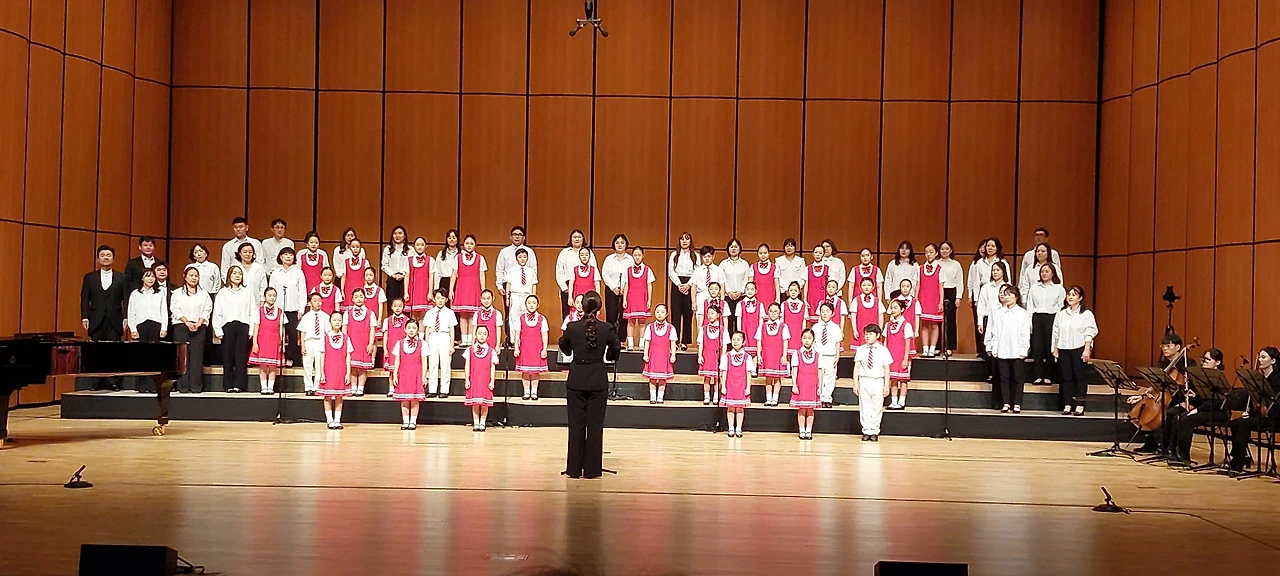 노란 옷 위에 황금빛으로 반짝이는 조끼를 덧입은 서른아홉명의 아이들이다.어여쁜 나비들이 황금빛 날개를 접고 내려앉는 듯하더니 대공연장 가득 미풍 같은 노래가 날아오른다.