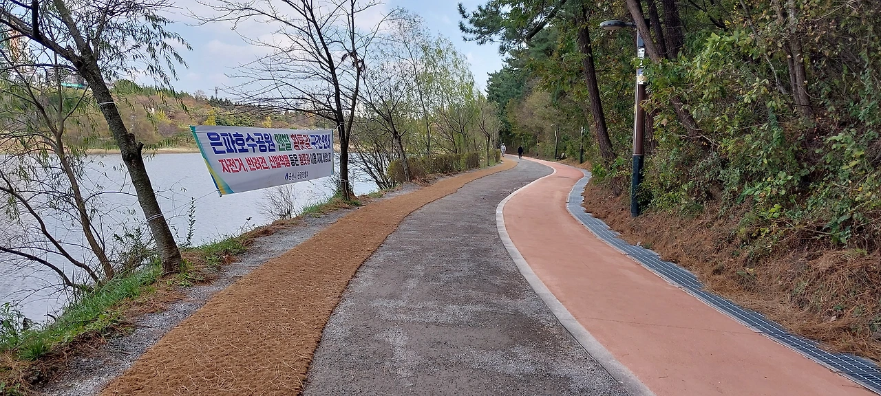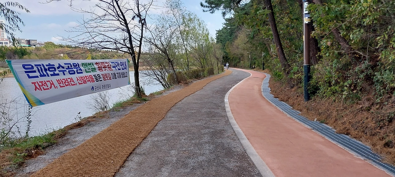 맨발 걷기를 위해 만든 그 황톳길이 은파호수공원에도 생겼다.
