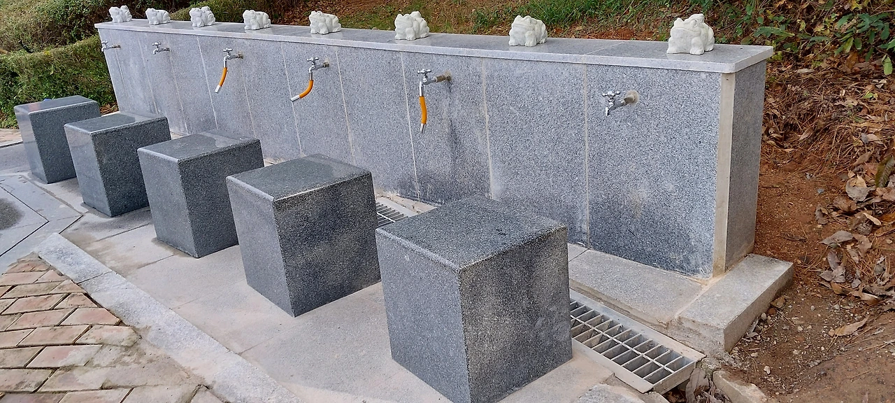 이곳도 어설프기 짝이 없다. 수도꼭지 네댓 개, 돌의자 몇 개...
