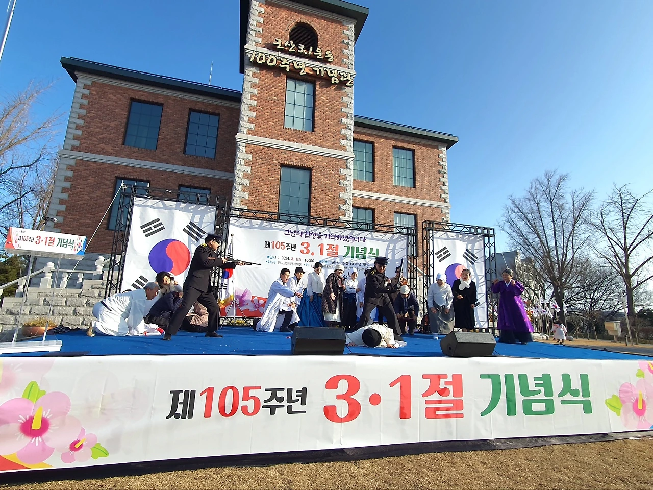 작년에는 구암동산 아래 시가지에서 교통을 통제하면서 행진과 기념행사를 했는데, 올해는 백주년 기념공원 안에 있는 넓은 광장에 번듯한 무대도 마련해서 안전하기도 했고 행사의 품격이 훨씬 높아진 듯하다.
