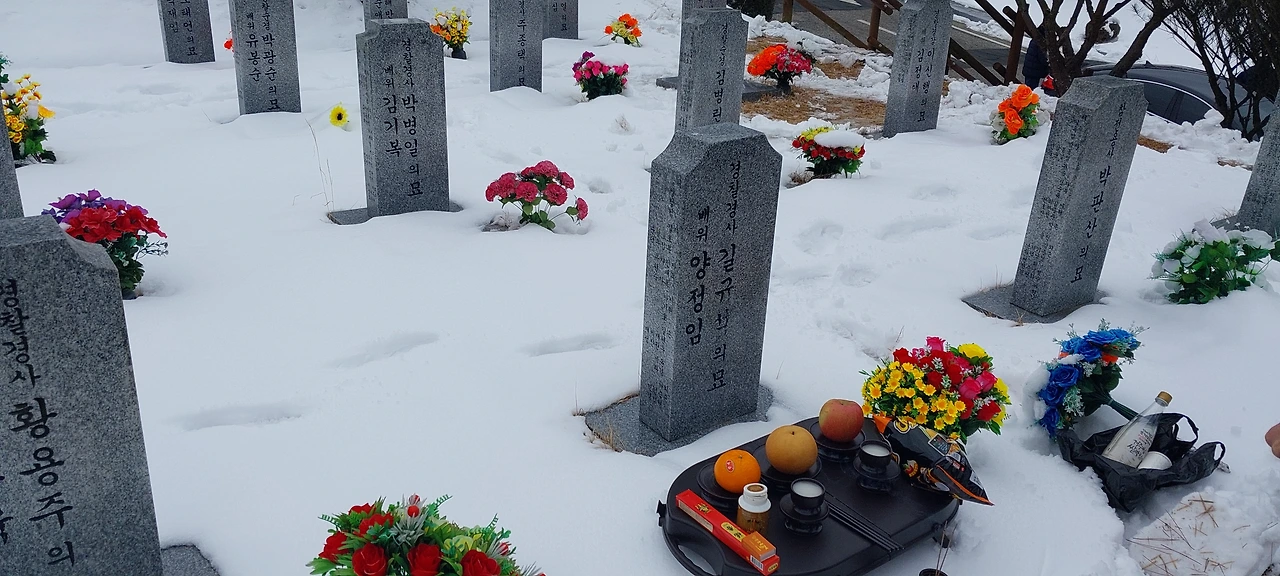 어쨌거나 단출하고 편안한 차례를 지내고, 눈길을 핑계 삼아 오늘 아침에사 임실 호국원으로 시부모님을 찾아뵈었다.