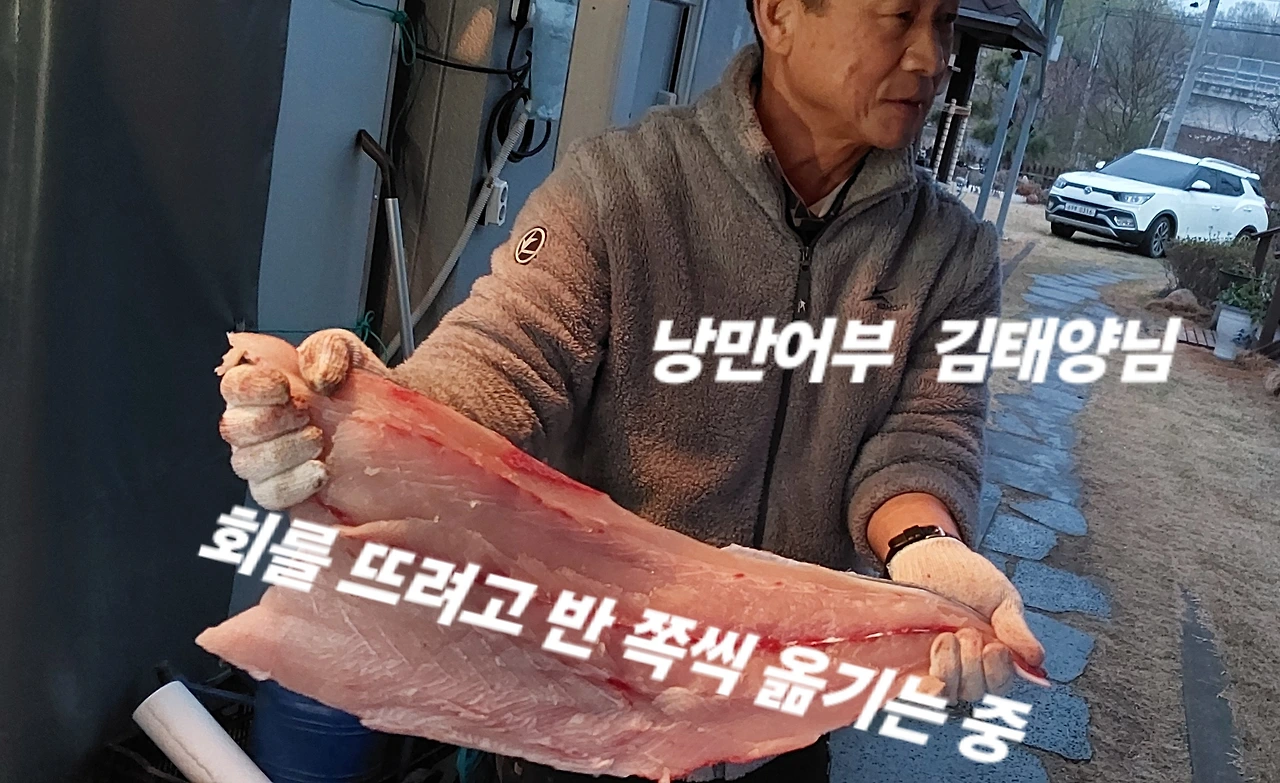 이름이 뭐냐니까 '부시리' 라고 하는데 남쪽 바닷가나 제주도 지역 사람들이 아주 좋아하는 생선이라고 한다. 방어와 맛이 비슷한데 방어보다 기름기가 덜하고 고기의 식감이 아주 좋다고 한다.