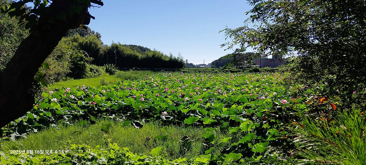 마당 앞 방죽엔 아직 연꽃이 가득하다.