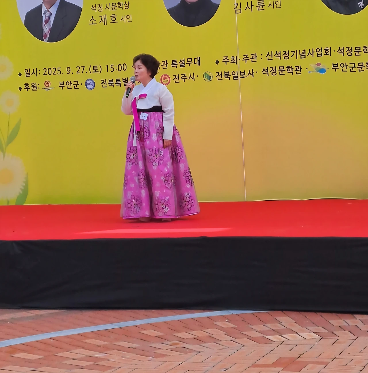 절뚝거리며 우리 은성이 시낭송대회를 데리고 나갔고(금상수상), 전북문인대동제 오프닝무대에서 시낭송을 해서 갈채를 받았다.