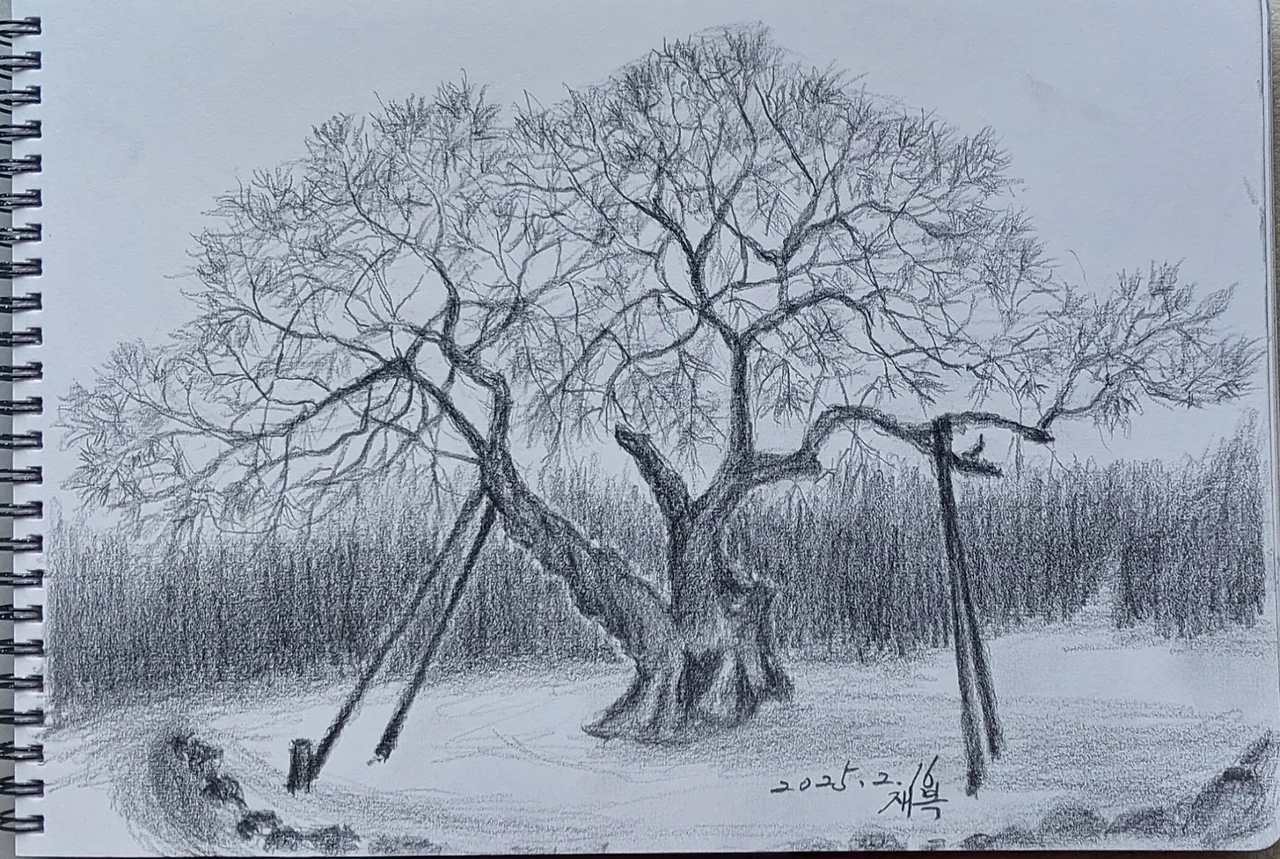 <2025년 2월 16일 서툰 솜씨로 그려본 600살 팽나무 할아버지>