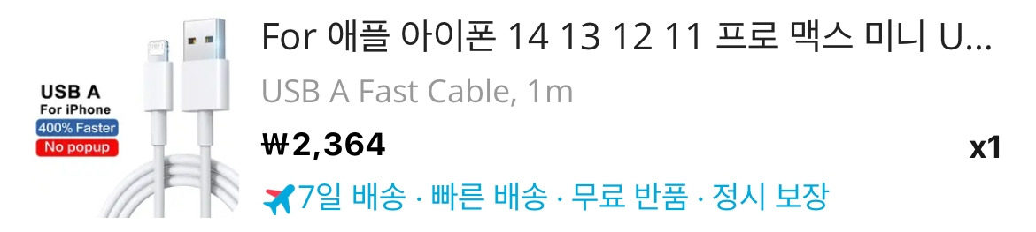 분명 일주일 쯤전에 '라이트닝 usb c타입'과 '라이트닝 usb a타입' 전송케이블을 각각 2,364원에 구매하고 전날 이 두 개를 배송받았는데 '라이트닝 usb a타입' 케이블이 2개가 더 발송된 것이었다.