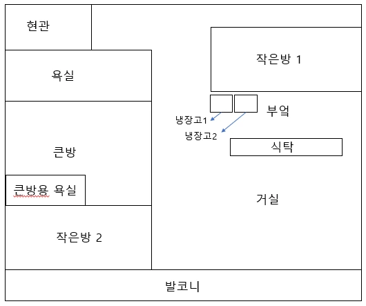 내가 살 방은 현관에 들어가서 바로 나오는 작은 방이었다. 50평(165m²) 정도 되는 집의 큰방은 현관에서 오른쪽으로 꺾어 나오는 욕실 다음에 있었다. 큰방의 옆에 또 작은방 하나가 더 있었다. 부엌은 내가 있는 작은 방과 벽을 맞대고 있고 큰 양문형 냉장고가 2대 있었다. 부엌에 있는 큰 식탁 너머에는 거실이 있었고 끝에는 발코니가 있었다.