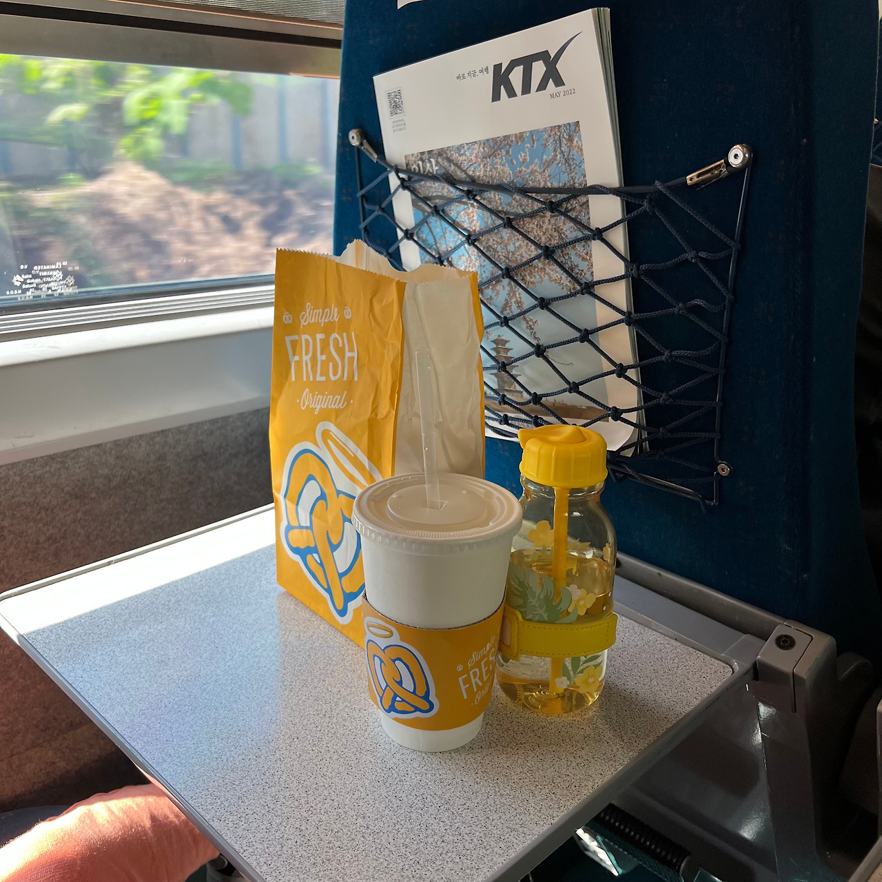 그런데 생각해보니 이건 이번 주 초부터 허용된 기차 내 취식 더분이기도 했다. 예전에는 기차 내에서 마스크를 꼬박 쓰고 있느라 기차 안에서 무언가를 먹는다는 것은 생각지도 못했는데, 이번 주부터 허용된다고 하길래 출발 전, 아들이 좋아하는 프레츨 한 봉지와 레모네이드를 사들고 자리에 앉았다. 맛있는 것을 먹으며 엄마, 아빠와 함께하는 여행의 시작이라는 들뜨고 설레는 마음을 마음껏 느끼게 해 줄 수 있어서 나도 얼마나 기분이 좋았는지 모른다. 역시 기차여행의 묘미는 맛있는 간식을 먹으며 바깥 경치를 즐기는 것인 것을, 그동안 이런 걸 누릴 수 없어서 어찌나 섭섭했는지 모른다.