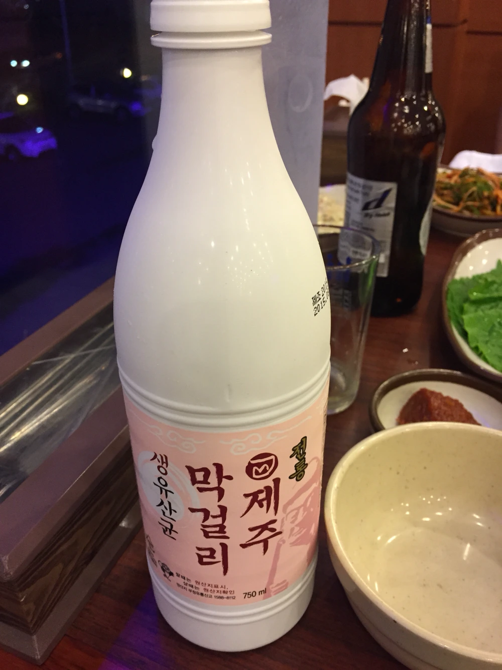 어른이 된 난 구이에 제주도 막걸리을 곁들인다.