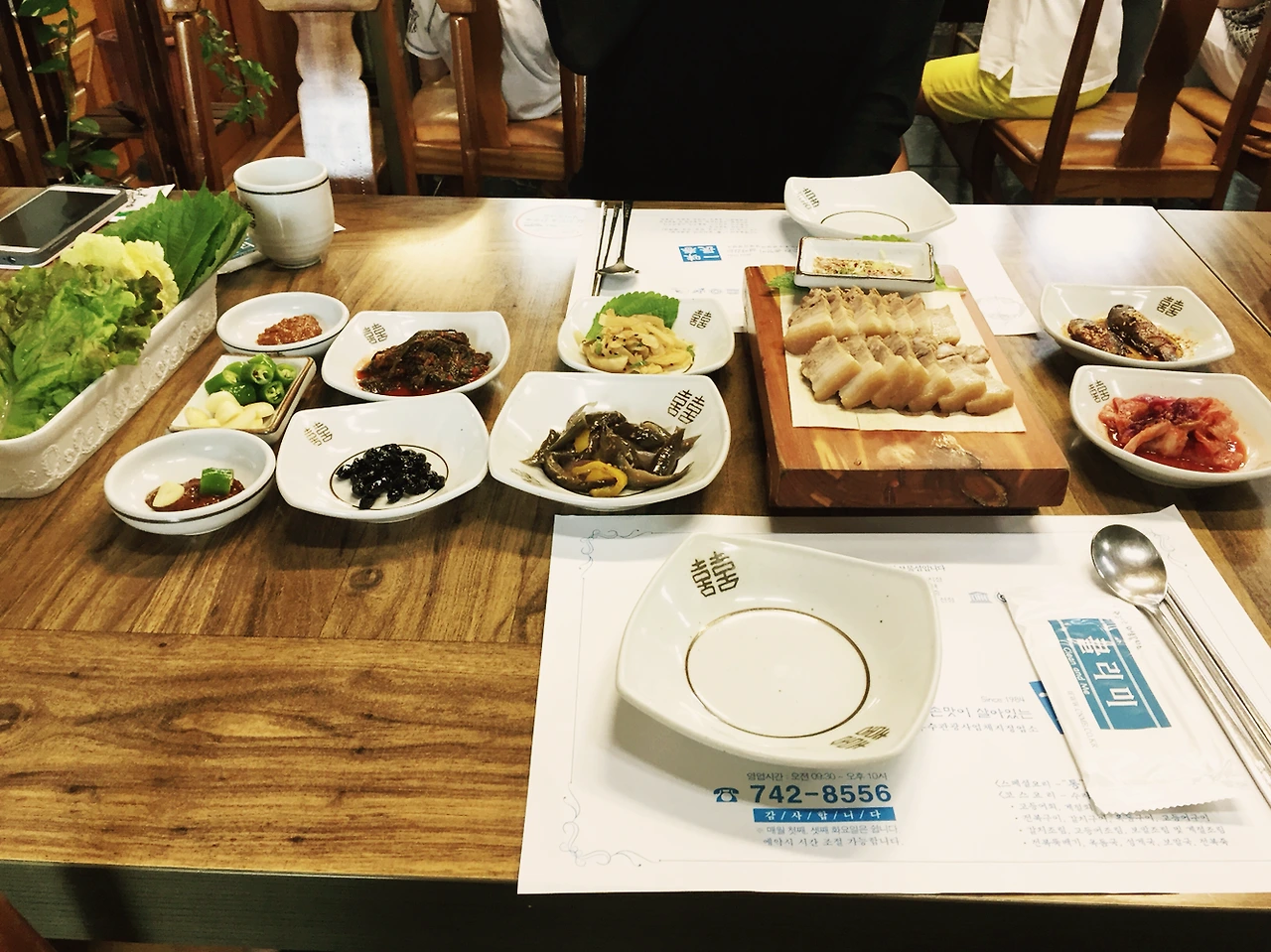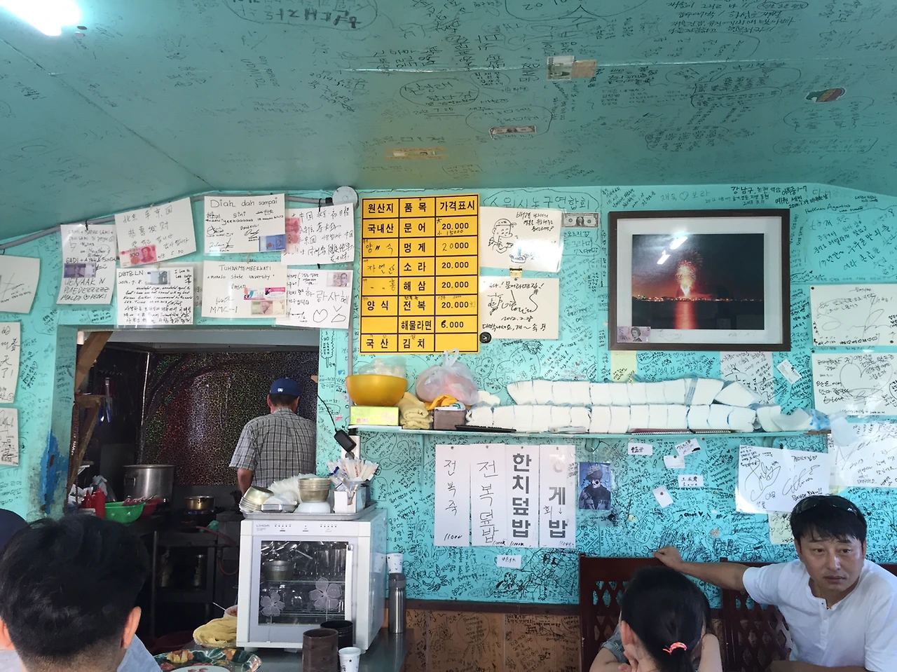 난 팟캐스트 걸신이라불러다오의 추천맛집이라서 가게됐다. 통갈치구이는 양도 많고 비싸서 간단하게 돔베고기, 성게미역국, 옥돔구이를 시켰다.