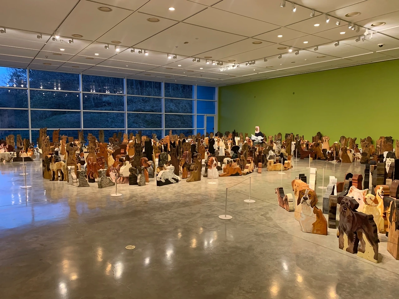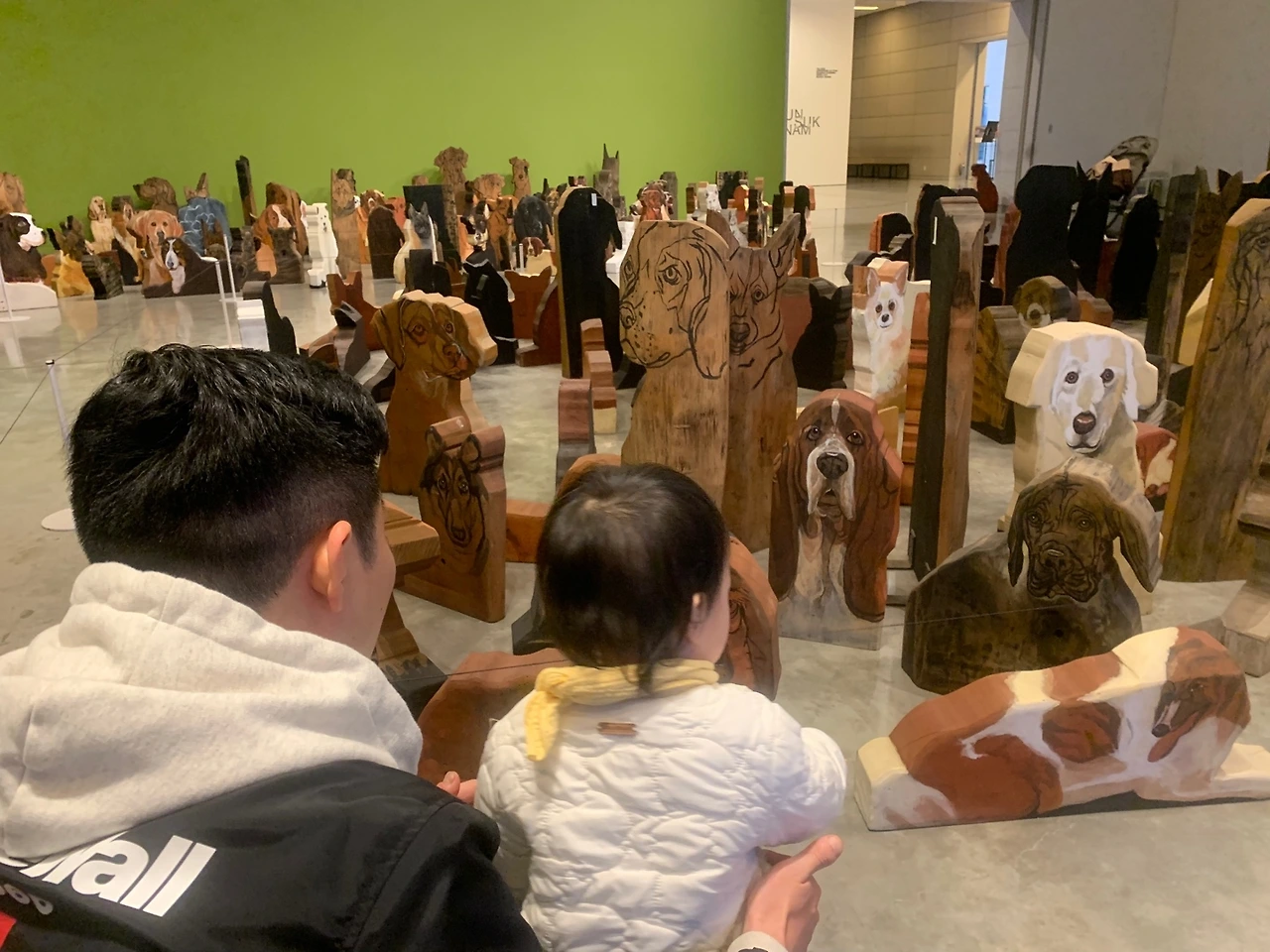 더욱 놀랍게 한 작품은 <1,025: 사람과 사람 없이>였다. 버려진 유기견을 보살피는 이애신 할머니의 사연을 우연히 접하고 그의 삶에서 받은 충격, 감동, 그리고 고마움으로 1,025마리의 유기견을 나무로 조각하여 작품을 만들기 시작했다고 한다. 모든 생명체는 존귀함을, 생명을 경시하는 인간의 이기심에 대한 저항을, 모든 생명은 공존해야 함을, 그럼에도 결국 인간애를 전달하는 듯했다. 이 작품 역시 작가의 자신의 작업에 대한 열정을 고스란히 느낄 수 있었다. 한 마리 한 마리 다 다른 1,025마리의 유기견들을 자신의 화법과 조각으로 특색 있게 완성해 낸 것은 과히 작품이었다.