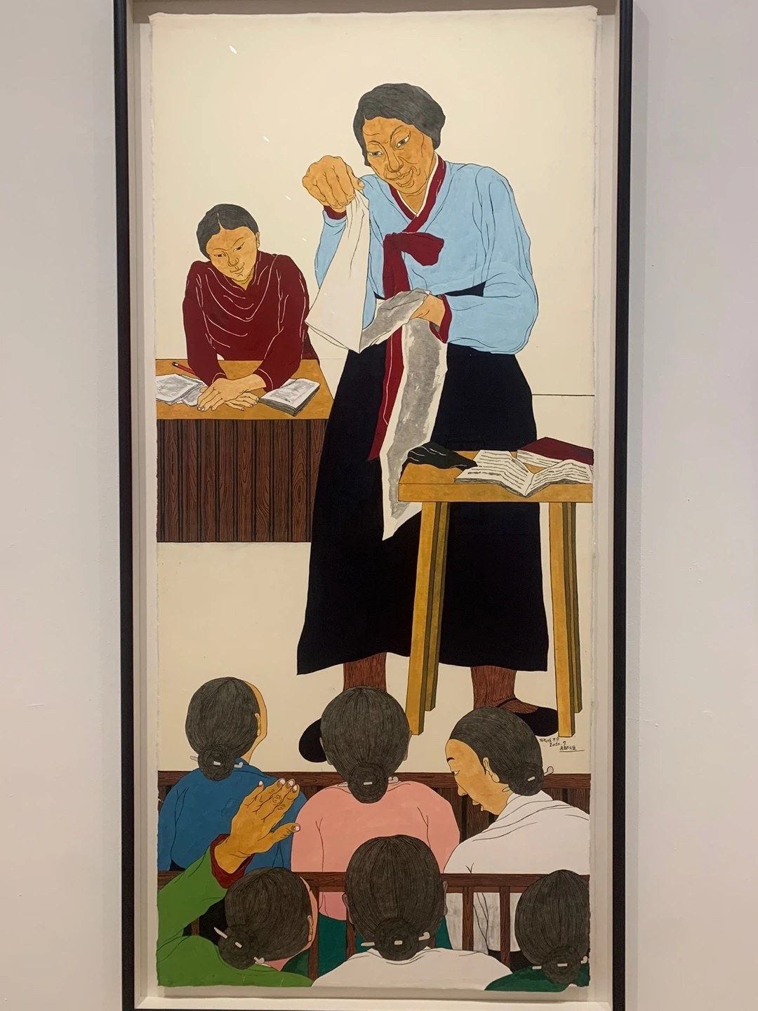 그중 첫 번째로 한국 여성 독립운동가를 다룬 채색 초상화 20점을 볼 수 있었다. 미술관의 거대한 벽면들을 허한 느낌 없이 가득 채우는 그림의 크기와 그림 속 주인공들을 표현한 선명하면서도 단호한 색채, 또 그들의 명확한 안광과 눈동자는 작가가 여성 독립운동가들을 진심으로 존경하며 많은 이들에게 그들이 기억되었으면 하는 바람이 진심으로 전달되도록 했다. 실제로 그러한 바람을 갖고 더 많은 초상화를 그리는 것이 자신의 목표이자 과업임을 밝혔다고.