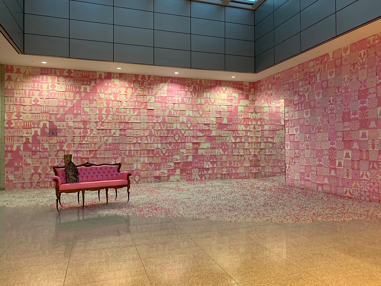 마지막 작품 <핑크룸 VI>은 작가의 연작 중 하나로, 겉으로 화려해 보이는 핑크, 앉을 수 없는 소파, 유리구슬, 거울 등은 불안하고 불편한 작가 자신의 모습을 형상화한 것이라고 한다. 사회적 기대와 현실적인 갈등 속에서 가정 내 여성이 겪는 압박감을 시각적으로 표현한 것이라고.