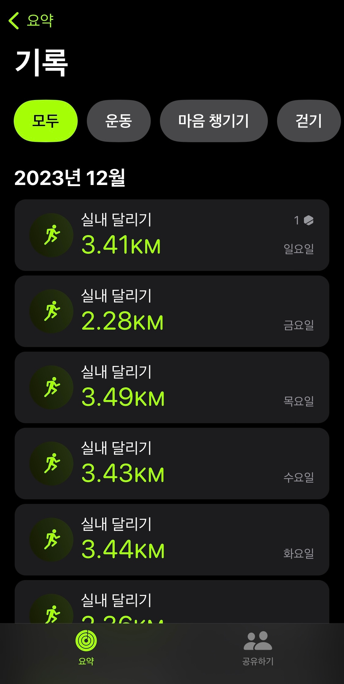 12월 18일 월요일부터 12월 24일 일요일까지 7일 중 하루를 뺀 6일을 달렸다. 달리지 못했던 그 하루도 너무나 달리고 싶었던 날이었으나 혼자 딸을 돌봐야 했어서 어쩔 수 없었다. 결과적으로 지난 일주일이 나에게 터닝포인트가 될 것 같다. 하루를 시작하면 언제 달릴까 고민하며 정말 어쩔 수 없는 이유가 아닌 이상 그날은 무조건 달리고 싶어 꼭 달리고 말겠다고 다짐하는 나를 매일 발견한다.