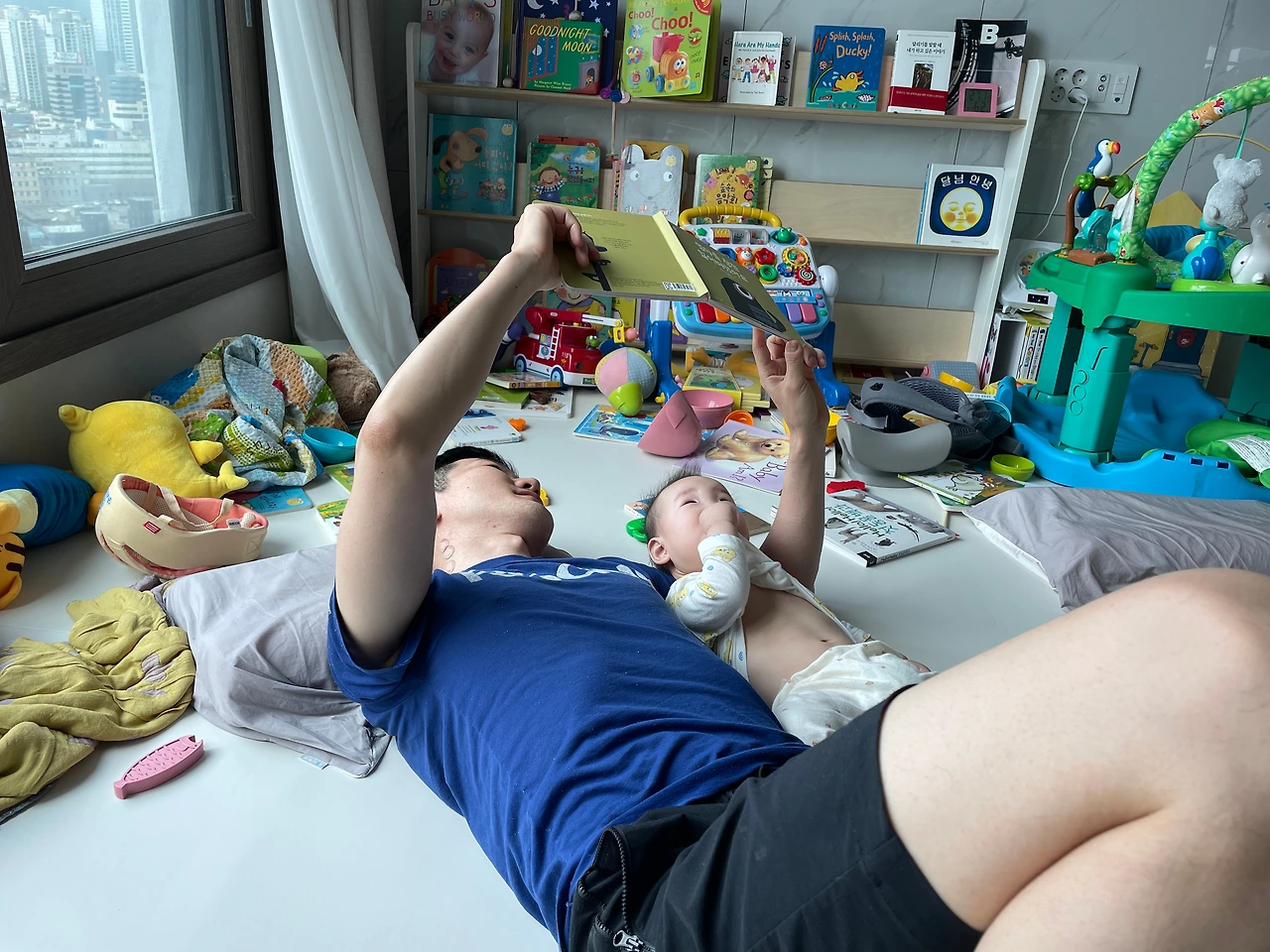 남편이 딸에게 책을 읽어주는 모습을 보고 있으면 왠지 모르게 동화 속에 들어와 있는 느낌이 든다. 바쁘고 정신없는 육아의 현실에서 잠시 벗어나 어떤 아름다운 한 장면을 보고 있는 느낌. 따뜻한 휴식을 맞이하는 느낌. 남편도 책을 좋아하는 사람이라 다행이고 행복이다.