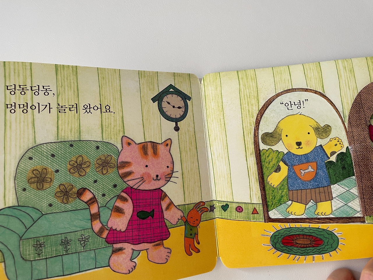 “와 멍멍 강아지가 야옹야옹 고양이집에 놀러 왔네~ 강아지가 안녕~하네. 우리도 강아지한테 안녕~ 안녕~ 하자” 하면