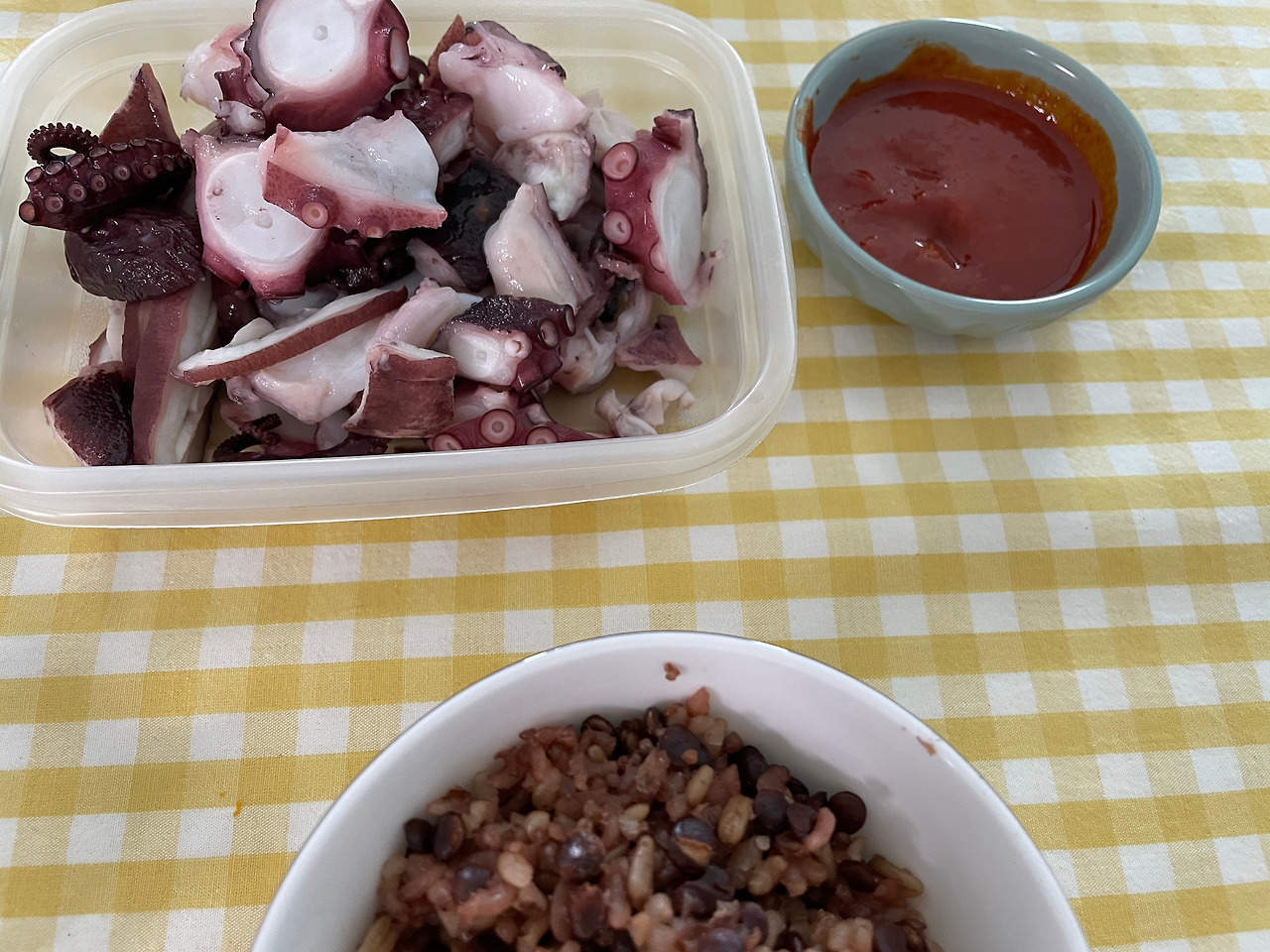 점심: 문어, 잡곡밥 한 그릇