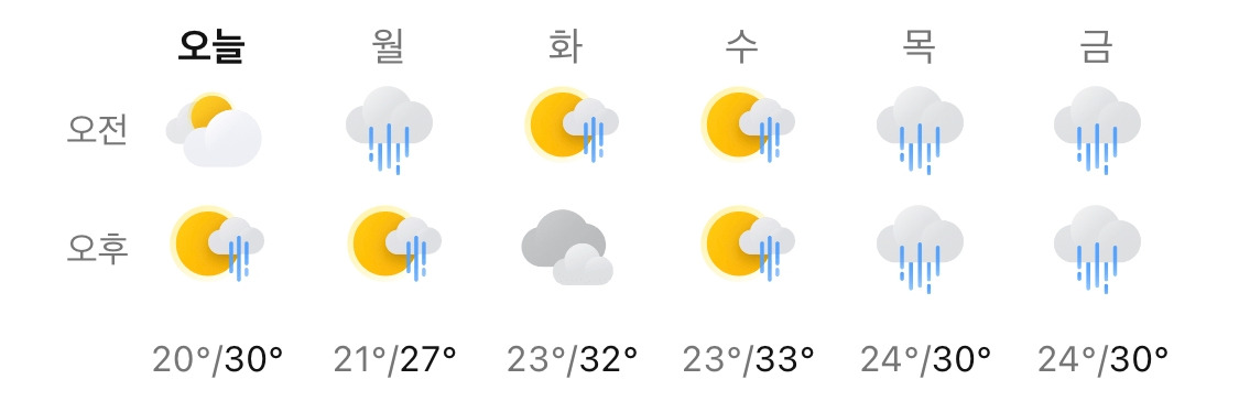 다가오는 주는 운동을 제대로 해보고 몸무게의 변화를 살펴봐야겠다. 그런데 장마기간이 닥쳐 비가 자주 올 것 같다.
