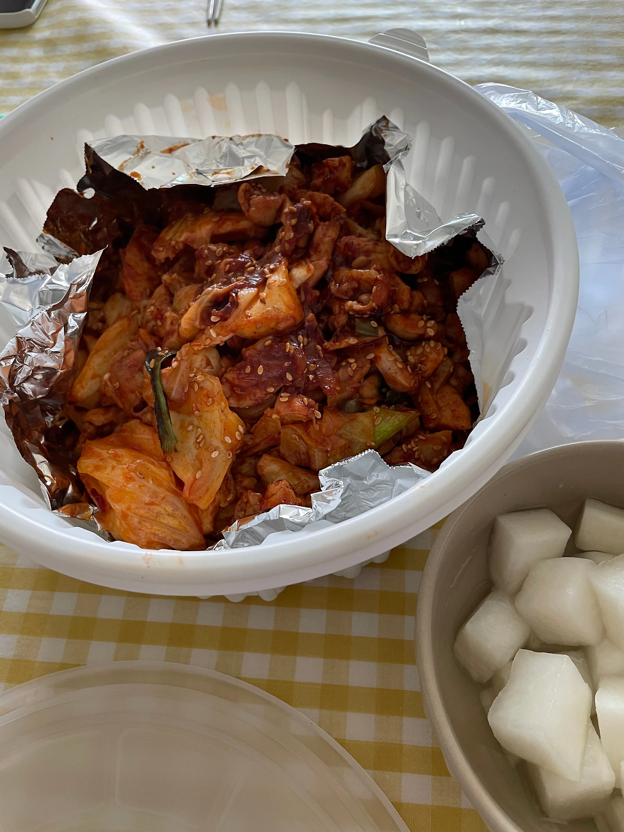 점심: 닭불고기, 잡곡밥 한 그릇, 참외 반 개