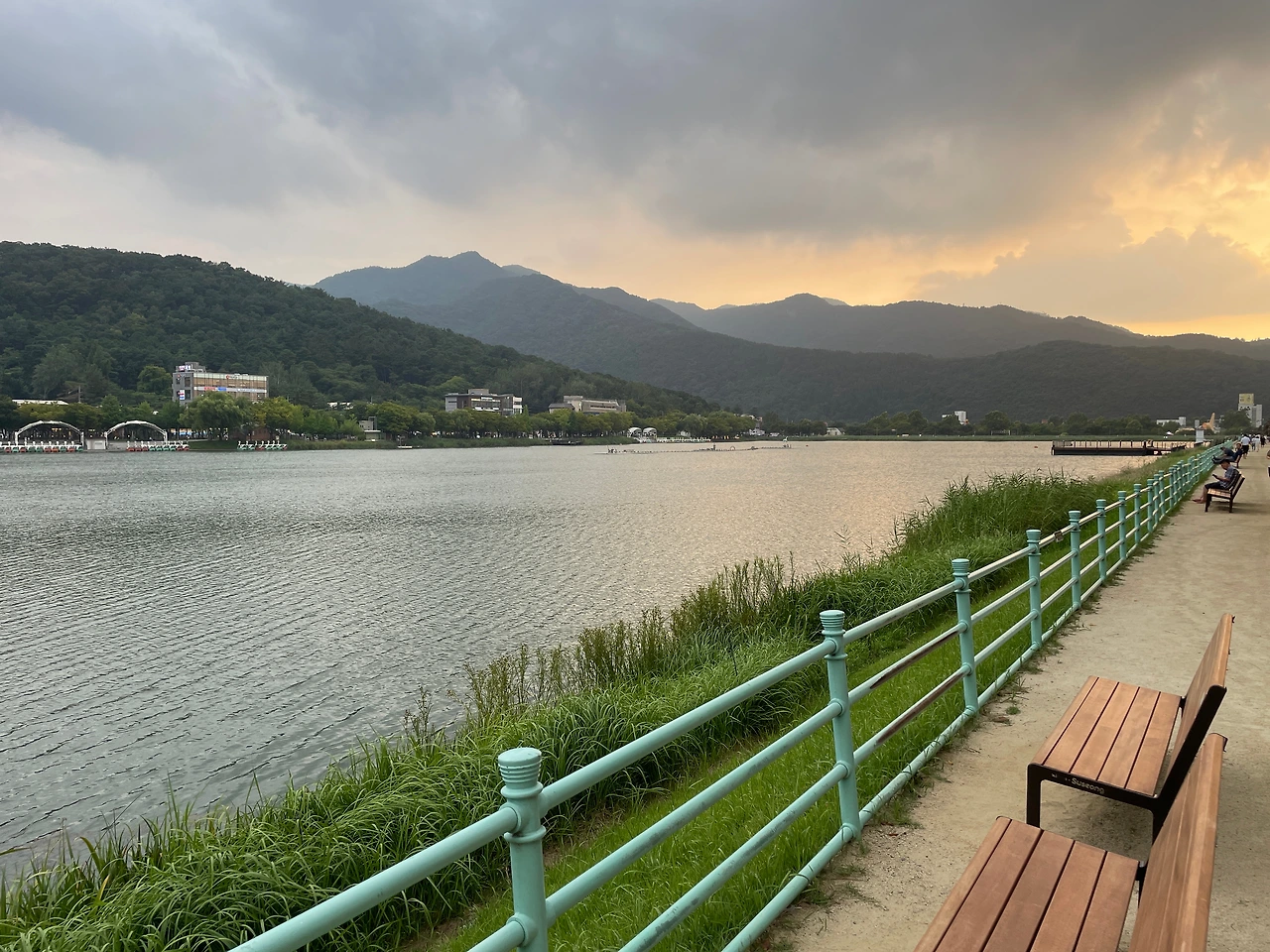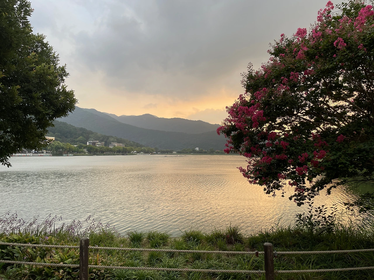 그렇게 도착한 수성못. 해질녘 수성못은 처음 보았다. 마치 이쪽, 저쪽의 의견을 조금씩 수용한 또 다른 중립의 의견은 절대 수긍하지 않겠다는 흑백의 강한 대립처럼 수성못을 많이 가봤지만 밝은 날의 수성못과 깜깜한 밤의 수성못만이었다. 그 사이를 보여주는 수성못은 오늘 처음 눈으로 본 것이다. 자전거를 타고 가는데 그냥 지나칠 수 없었다. 잠시 내려 노을 진 수성못을 담았다.