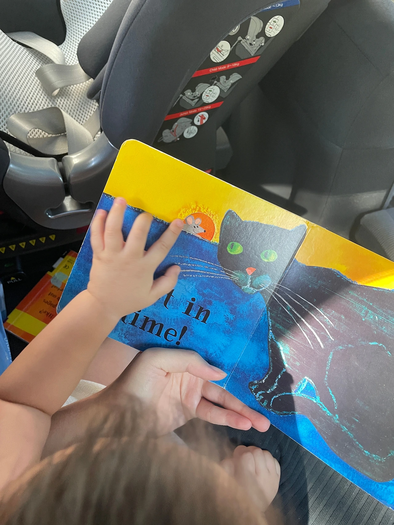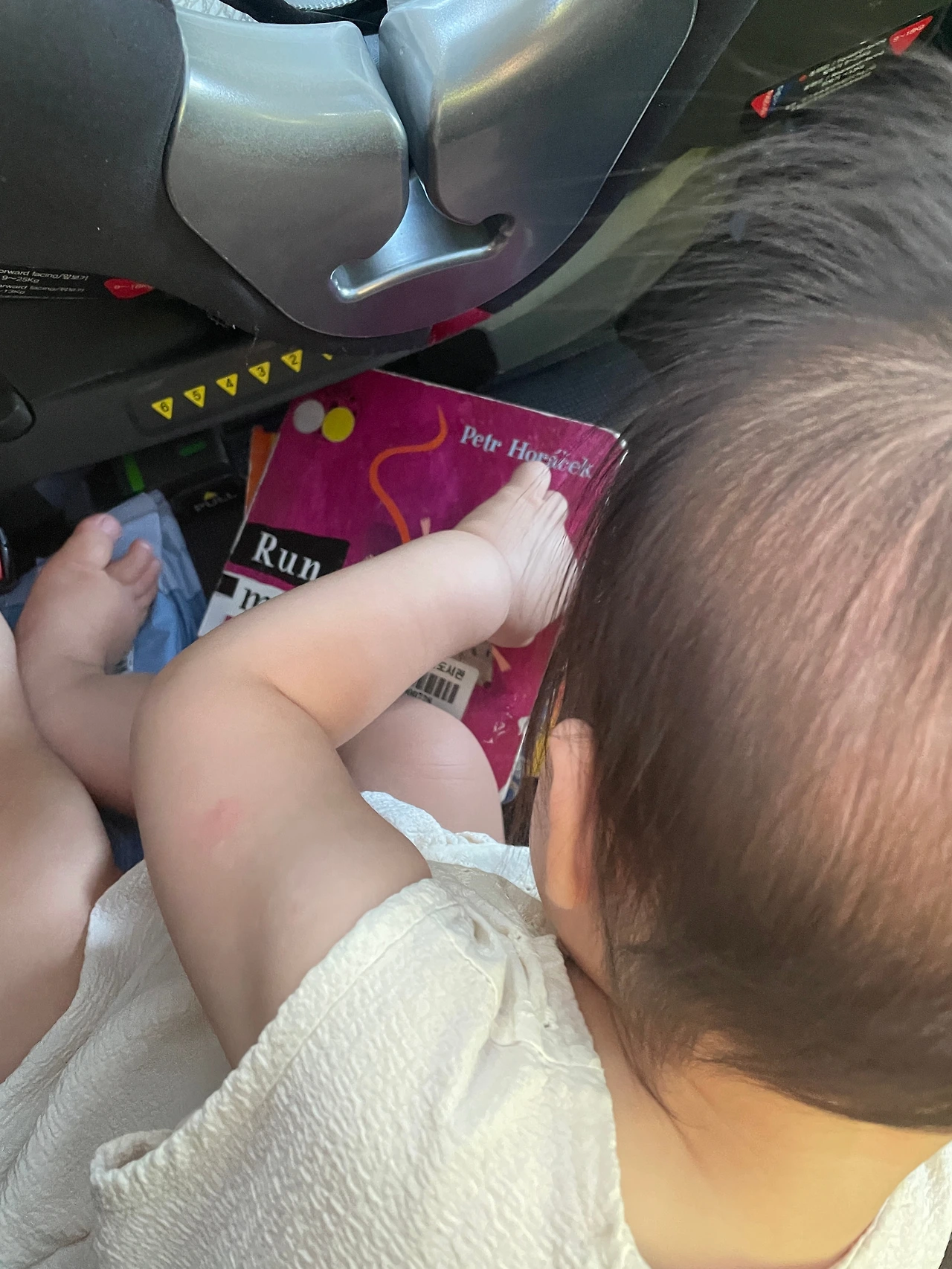 1살 딸이 나에게 알려주는 답: 차를 타고 이동할 땐 그림책을 꼭 챙기자. 잠시라도 그림에 집중하는 딸을 발견할 수 있다. 그림책으로 카시트에서 울지 않는 딸을 만들어봐야겠다. 그리고 영어그림책을 읽어줄 땐 건조하고 덤덤하게 보다 연극하듯이 조금은 오버하자. 그럴수록 딸의 미소가 점점 더 환해진다.