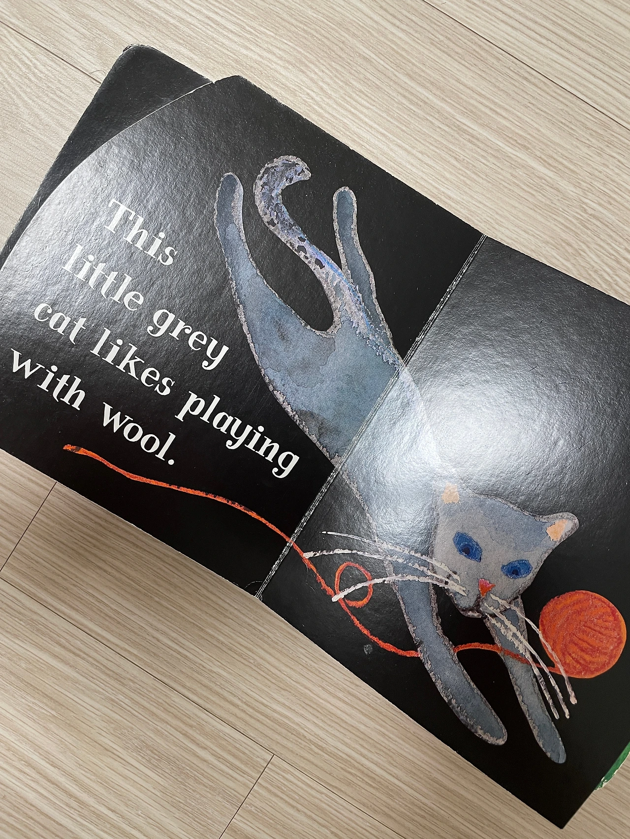 <Hello, Little Bird>가 선명한 색채의 그림에 영어 표현이나 문장들도 그리 길지 않고 딸에게 읽혀주기 적당한 것 같아 며칠 전에 영어도서관을 들러 동일한 작가의 책을 몇 권 더 대여했었다. 이번에는 그중 빼뜨르 호라체크의 책 <This Little Cat>을 딸에게 읽어주었다. 이 책은 다양한 색깔의 고양이들과 각 고양이들이 좋아하는 것들이 한 문장씩 표현되어 있다. 그러므로, 색깔 관련 영어 어휘와 반복되어 나타나는 ‘A likes ~ing’ 문장을 익히기 좋다.