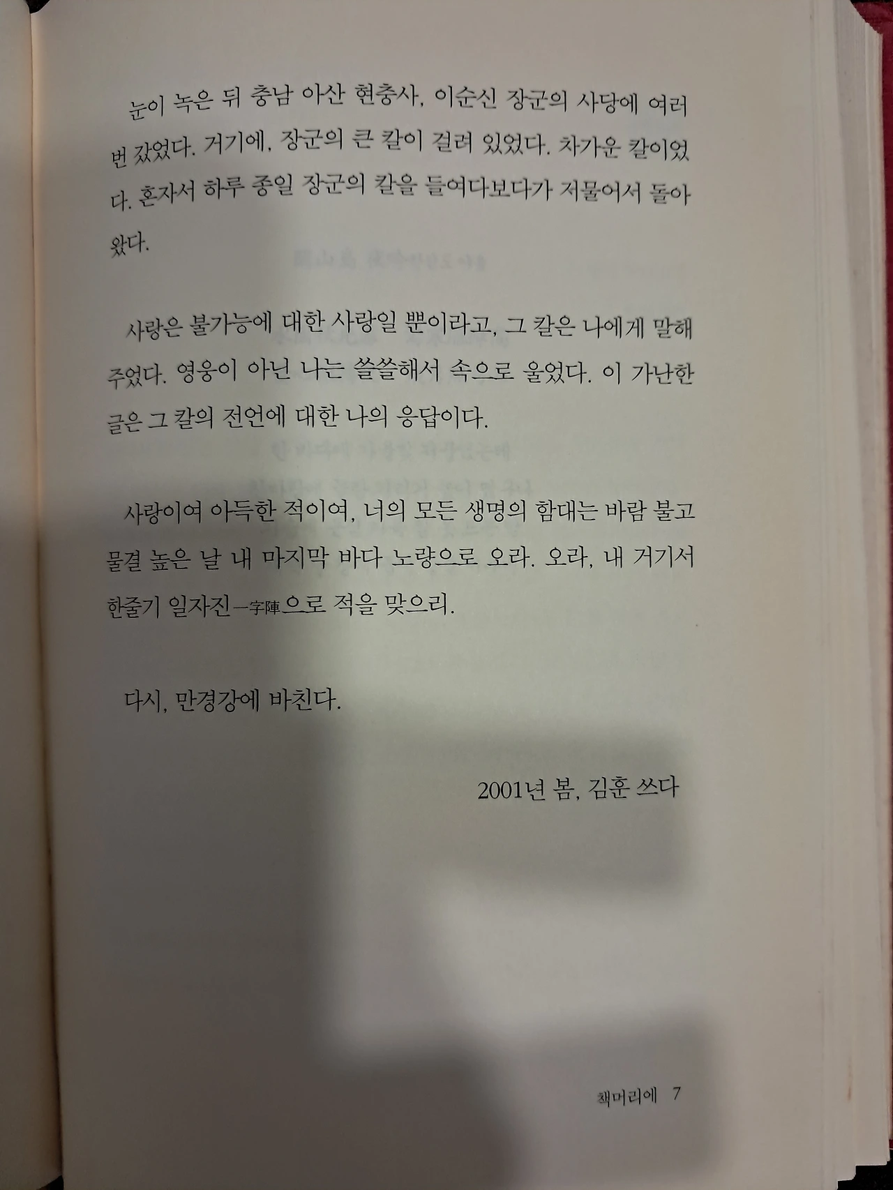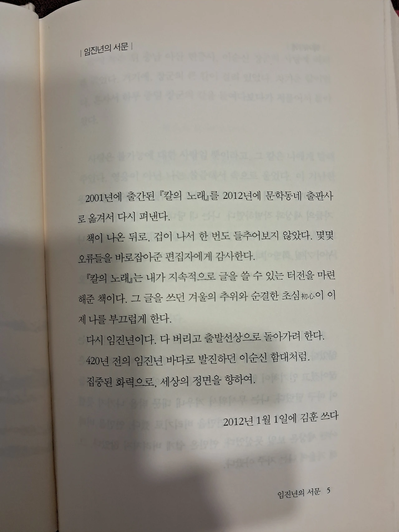 누구나 다 아는 김훈 소설 《칼의 노래》다.