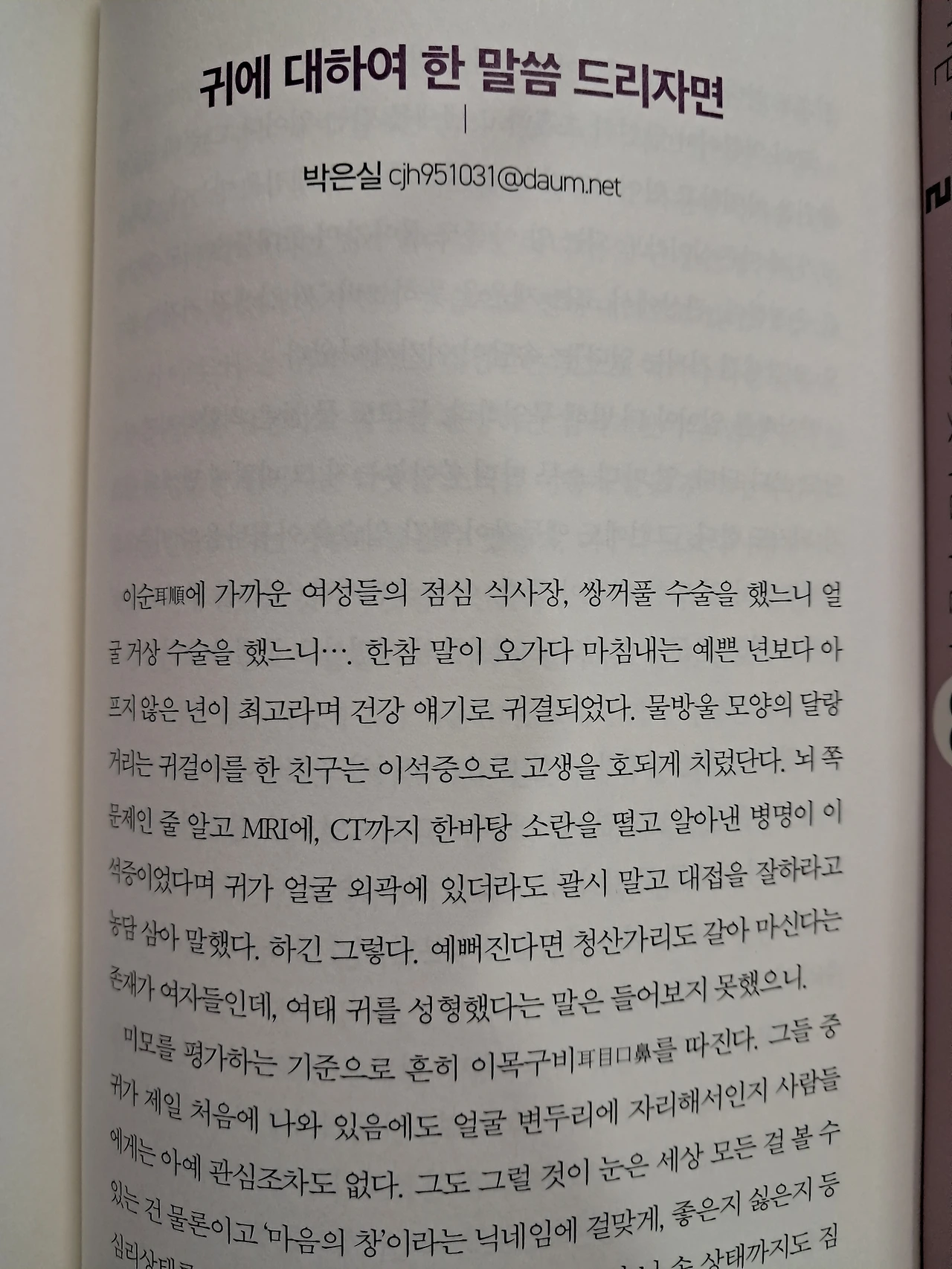 출간 작가. 《당신은 오월을 닮았군요》저자. 제 1회 범우수필문학상신인상 수상. 편안한 글 읽고 쓰고 싶은 분들께. 이메일 cjh951031@daum.net
