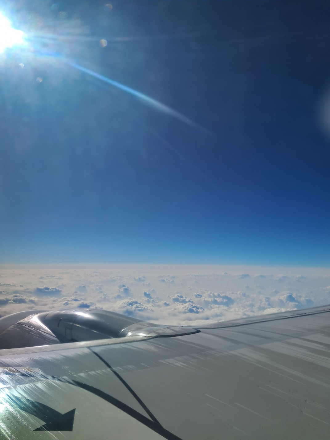 이륙 전 비행기 제설작업을 했다. 언젠가 이 광경을 경험한 적이 있었는데 워낙 오래전이라 기억이 선명하지 않다. 아무튼 아침 일찍 부지런을 떨며 대충 세수한 내 얼굴과는 다르게 비행기는 말끔히 목욕까지 하고 사뿐히 날아올랐다.