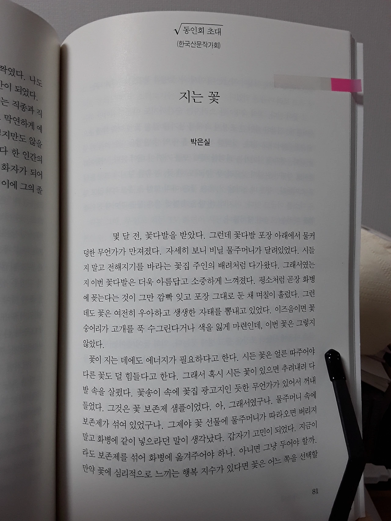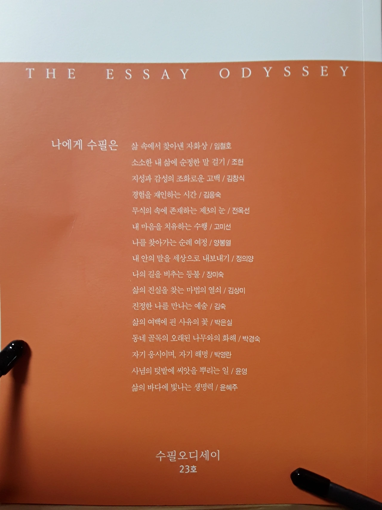 특이한 점이라면 표지 뒷장에 <나에게 수필은>이라며 수필가에게 의미를 물은 점이다.