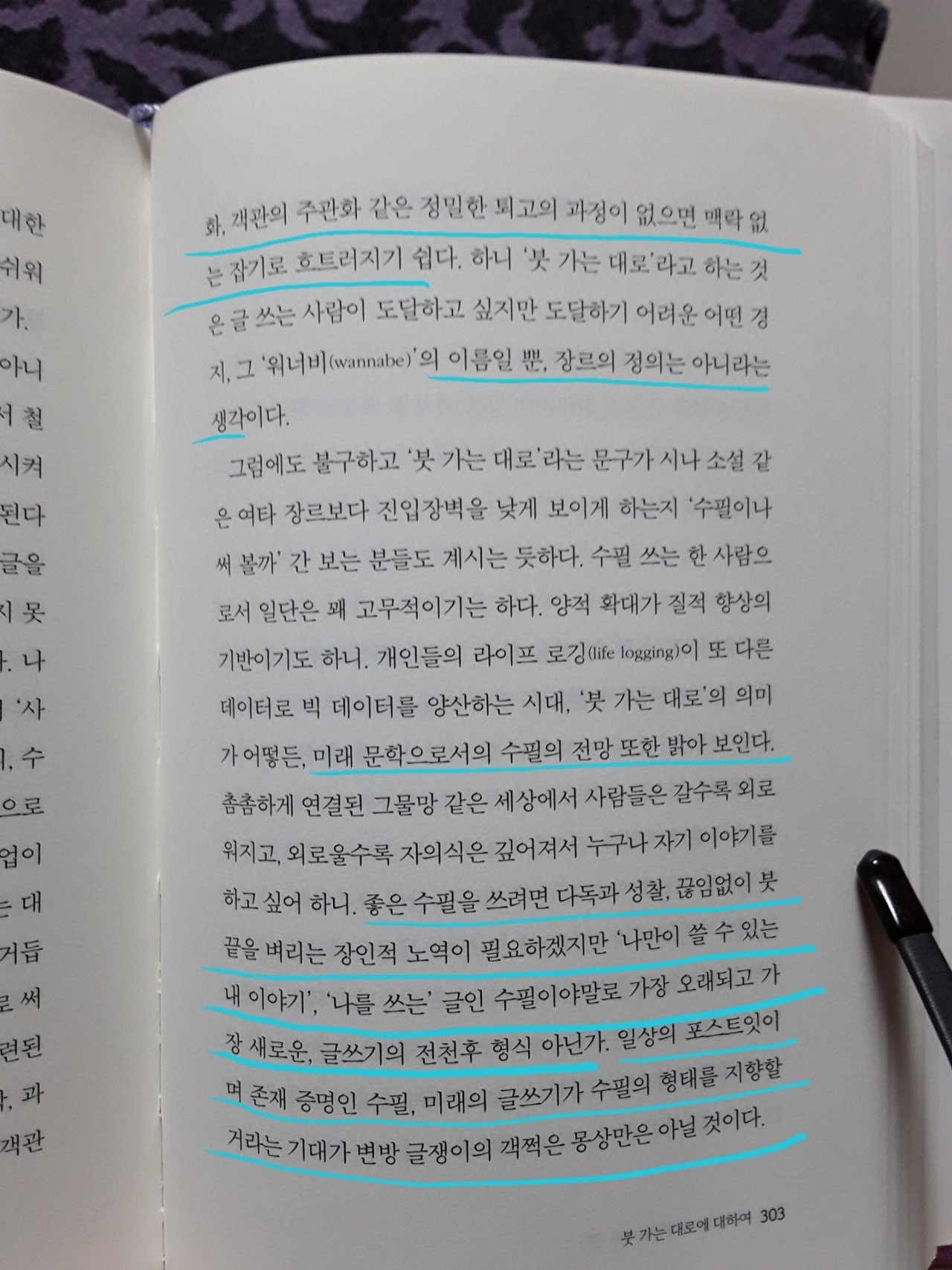 그러던 어느 날 밤. 잠은 안 오고 지랄이야. 첫사랑 열병을 앓는 것도 아닌데 때아닌 청승이야. 책장 앞을 슬쩍 지나다 기어이 그 책을 꺼냈네. 이 글 하나만 읽고 말아야지, 이번에는 사진도 찍지 말아야지 했건만. 웬걸? 속도 없이 벌써 찍고 밑줄도 그었잖아. 자존심도 없이. 또다시 몰려드는 허탈감과 충만감. 미치지 않고서야 이 상반된 감정이 동시에 출현돼도 되는 것인가? 나는 도저히 안될 것 같은 허탈감. 읽어 내려가면서 채워지는 충만감이라니. 냉탕과 열탕도 아니고 조증과 우울증도 아니고. 이런 해괴한 상황과 맞닥뜨리니 그저 허허 웃을 수밖에.