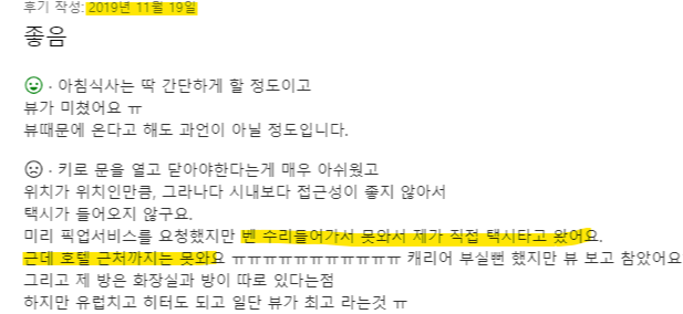이 글을 쓰면서 다시 숙소 예약사이트의 후기를 읽어보니 2019년에도 차량 상태가 좋지 못했다. 그때까지도 그 승합차를 사용했나 보다. 재미있기도 하고 겁나기도 했다.