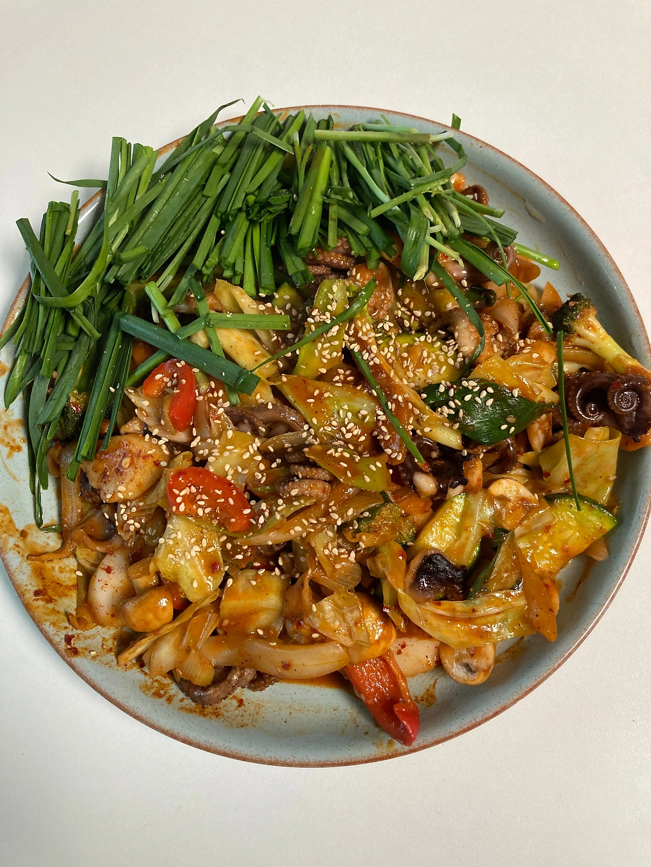 저녁으로 냉동실에 있던 주꾸미를 먹기로 했다. 음식을 준비하는 동안 아내가 “어제 당신이 화이트 와인 사 오지 않았어?”라고 했다. 아이고 좋아라. 바로 와인 세팅을 했고 빨간 양념을 한 주꾸미는 밥에 비벼 먹어도 맛있었고 와인과도 잘 맞았다.