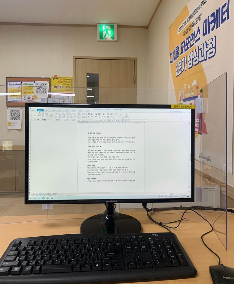 오전 9시 반부터 1시 반까지 매일 와서 글을 쓰고 수업을 듣고 두 달을 교육받았다.