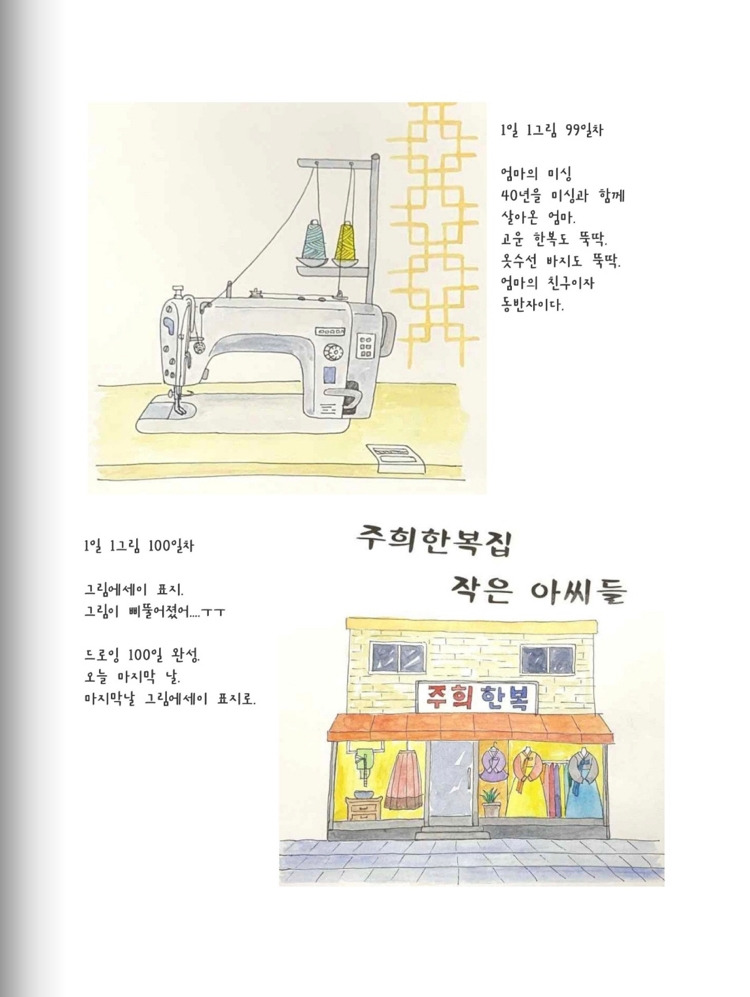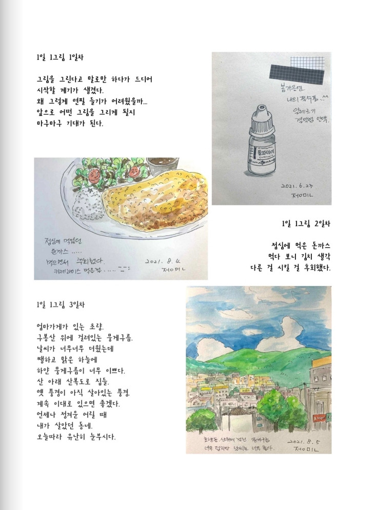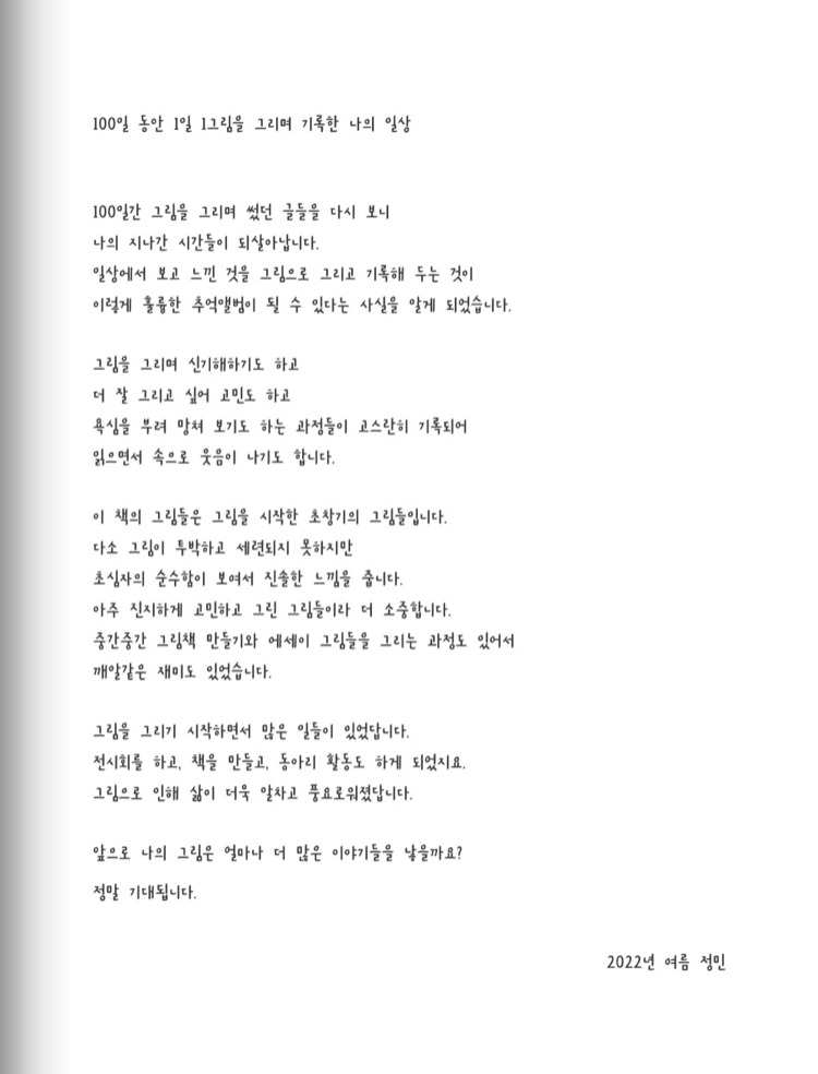매일 그림을 그리고 올릴 때는 몰랐는데 글도 제법 쓰여있었다.